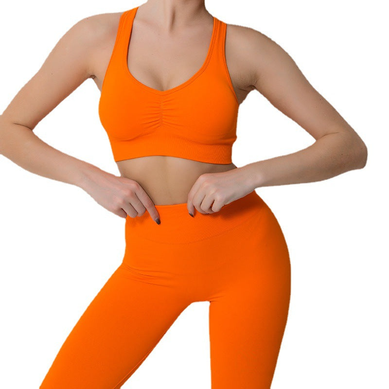 Environmentally friendly new yoga suit three-piece seamless knitted long-sleeved sports suit beauty back fitness suit