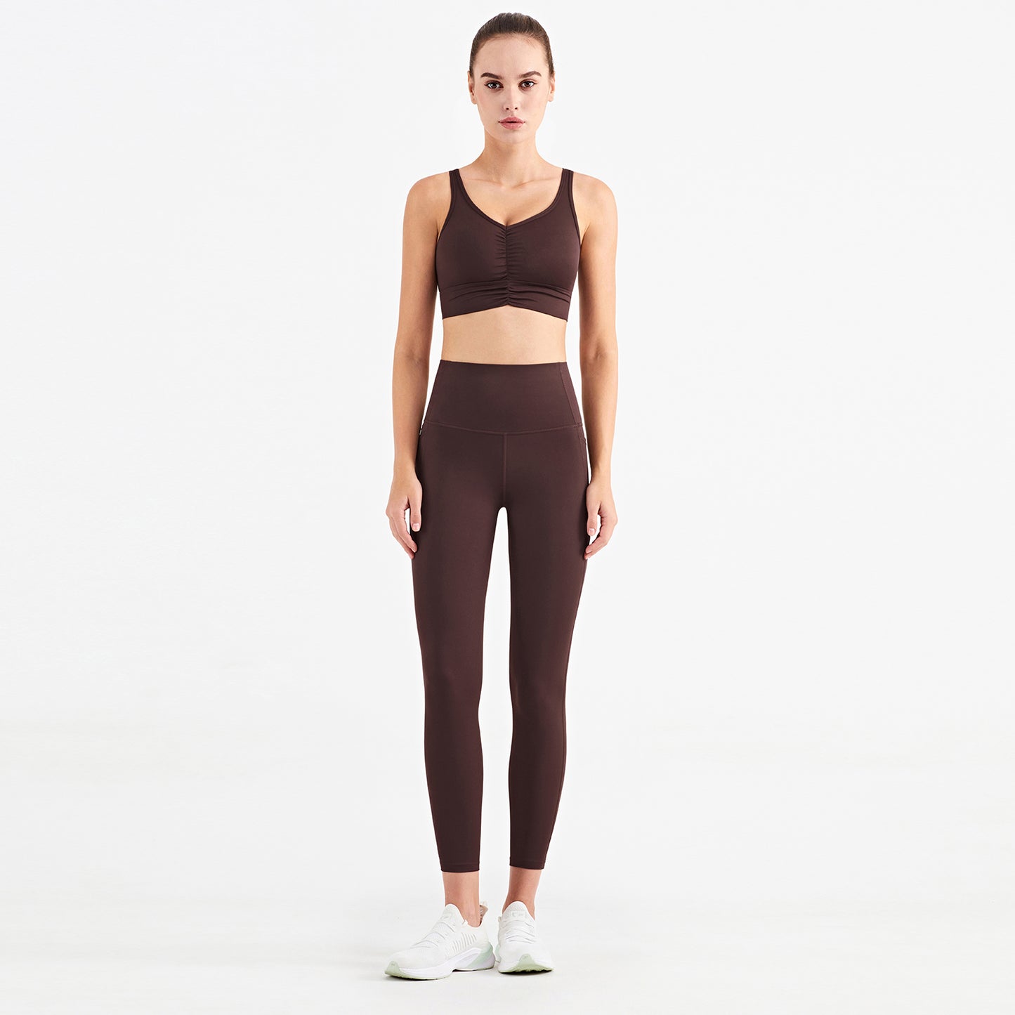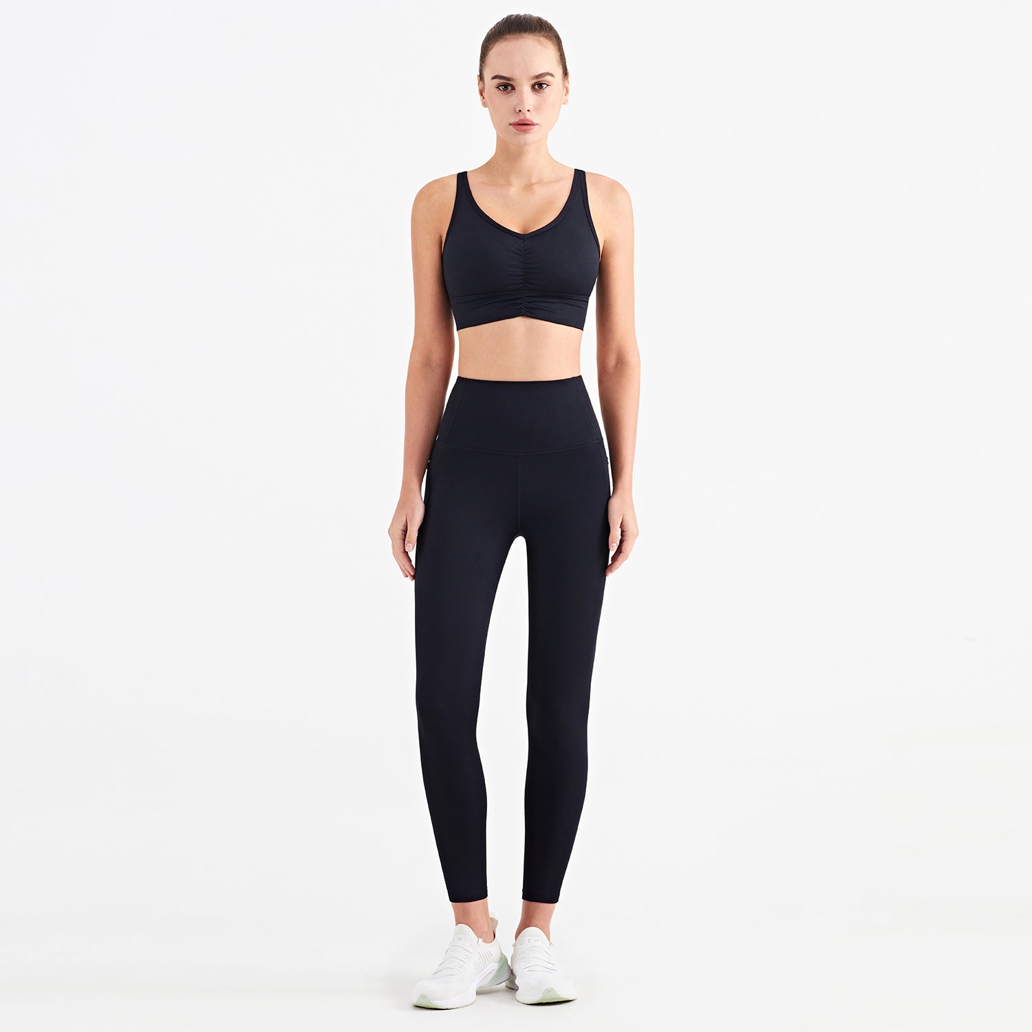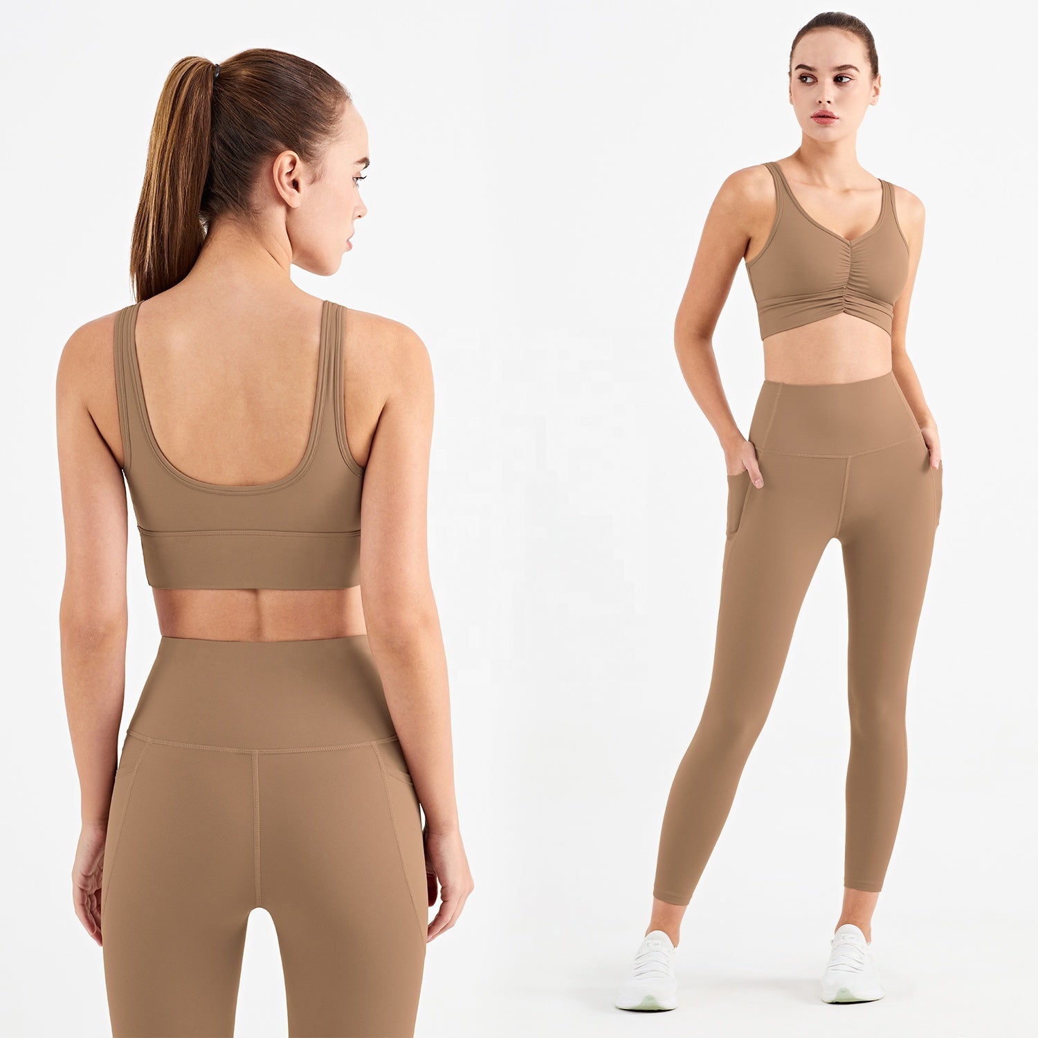 2022 new triangle beauty back fitness sports bra thin shoulder straps gathered nude yoga bra