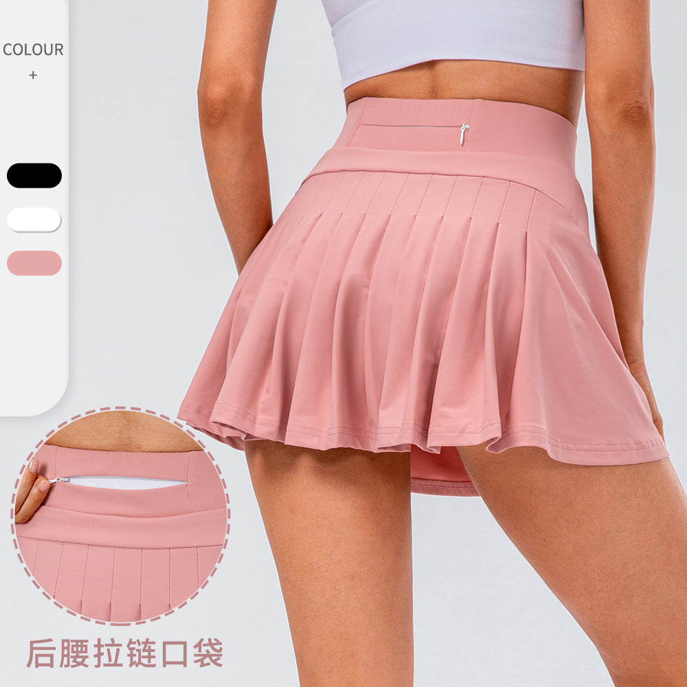 Female nude fitness tennis skirt double layer anti-glare dance pleated skirt running breathable sports short skirt 12430