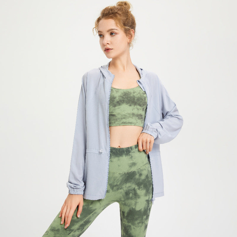 long sunscreen UV sports jacket quick-drying running fitness clothes long-sleeved yoga top summer