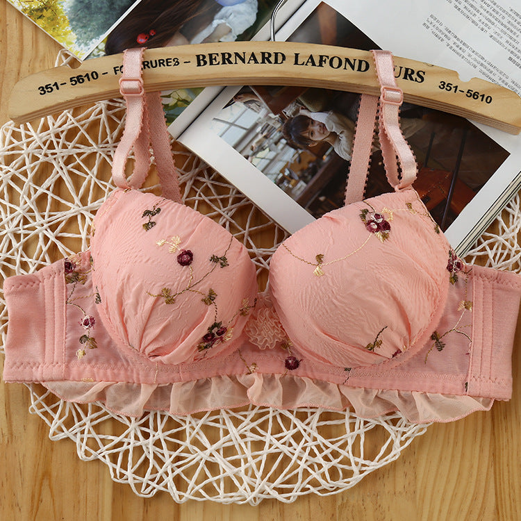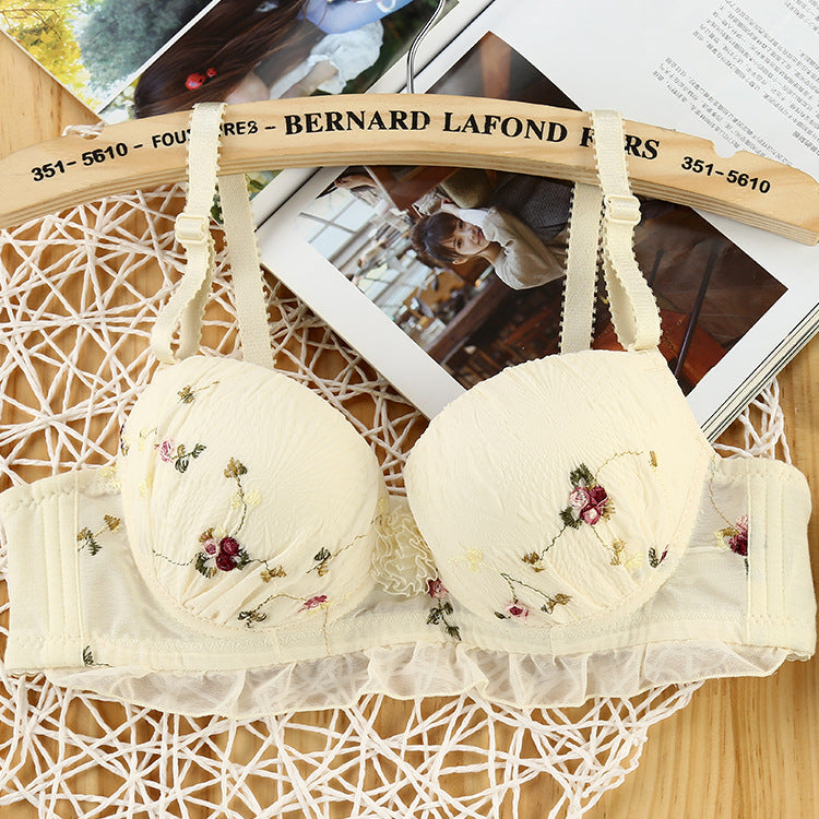 Manufacturers supply girl underwear set Embroidered flower bra set Small fresh girl Japanese bra