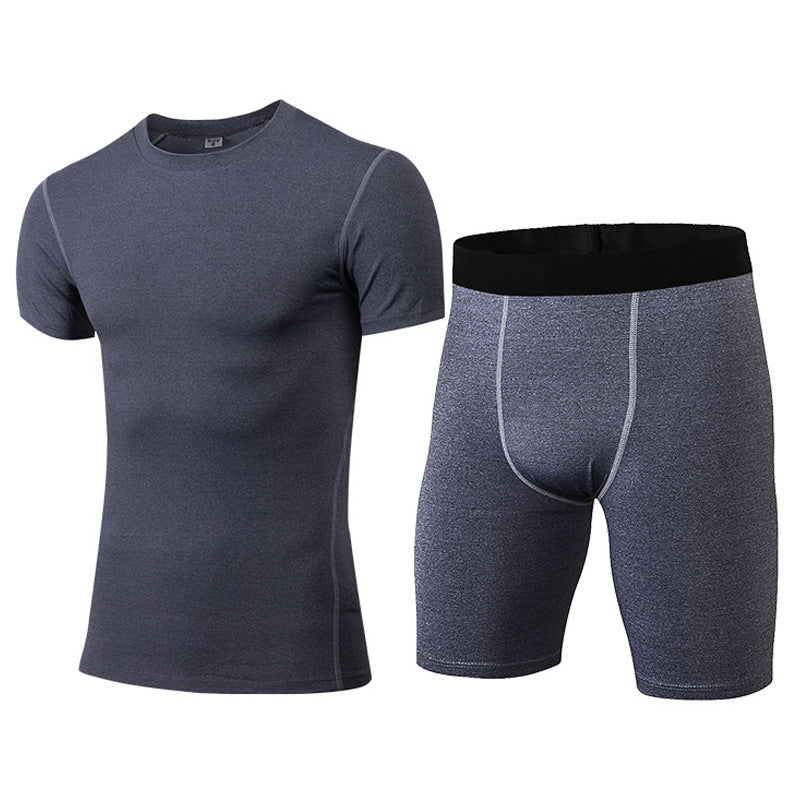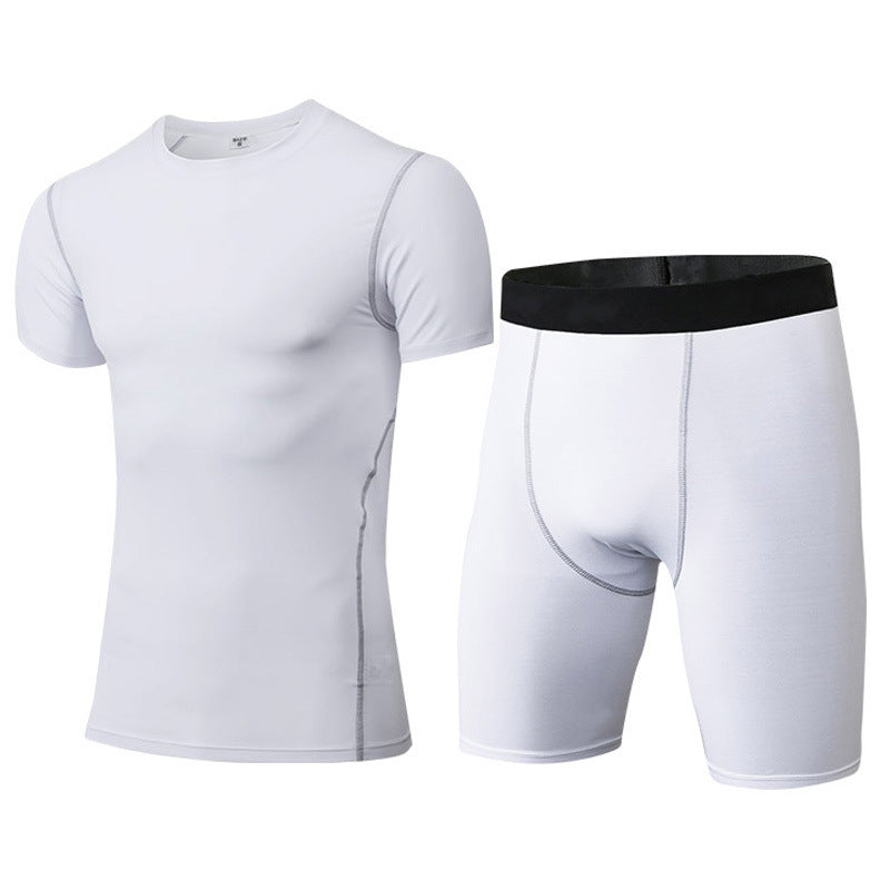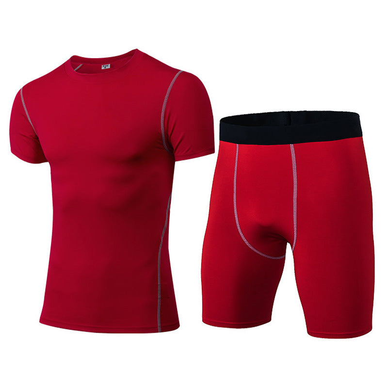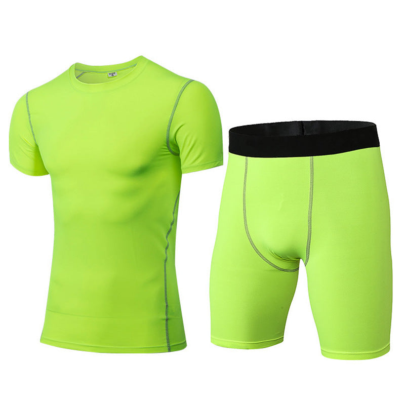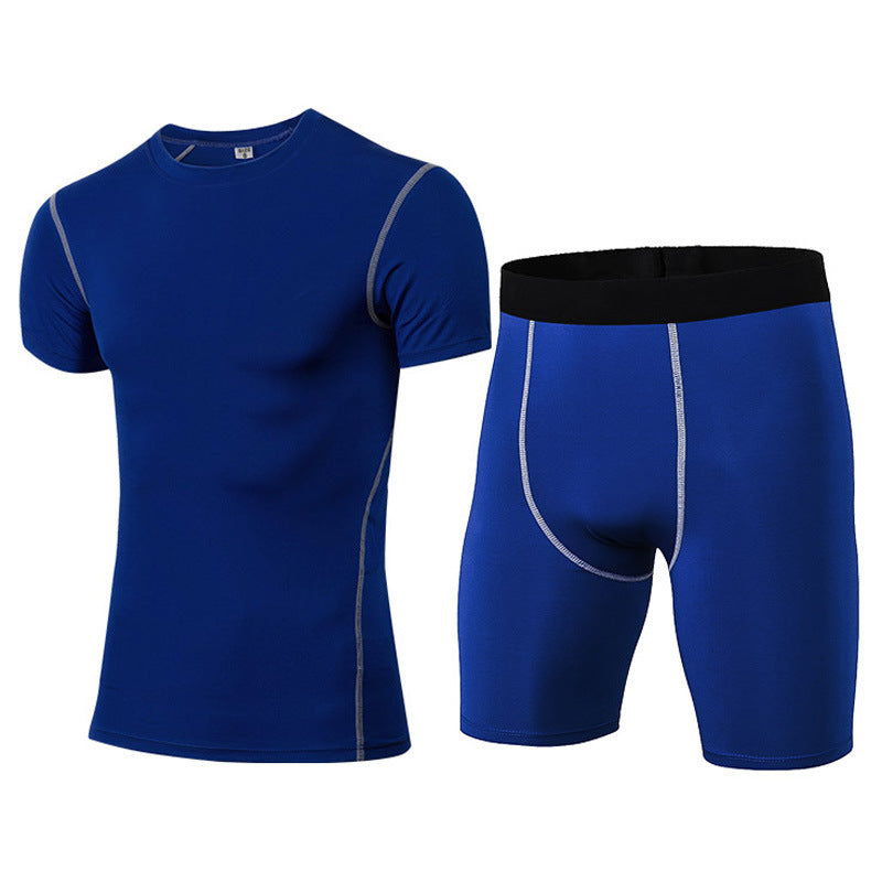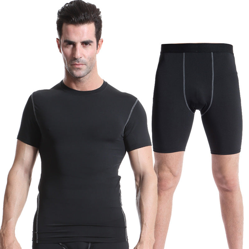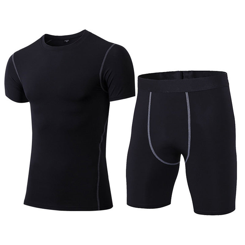 Men's PRO tight training suit, sports fitness suit, wicking and quick-drying short-sleeved + shorts 1003+1004