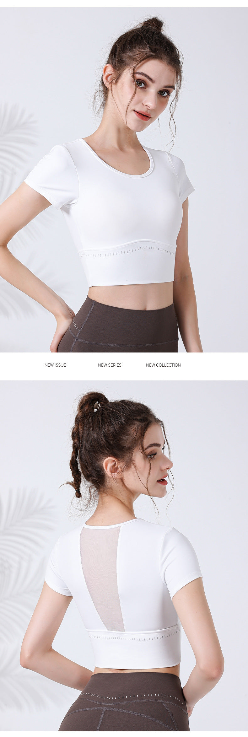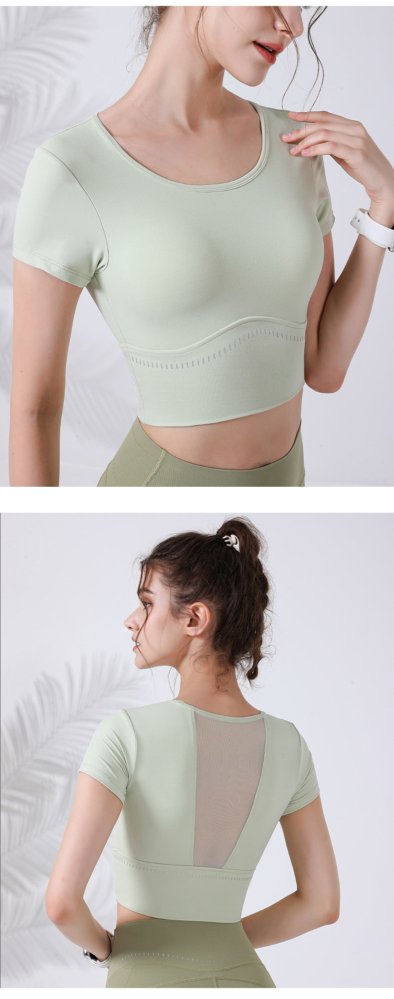 mesh breathable sports top women's net red curved pull-up hem tight-fitting yoga clothing short-sleeved
