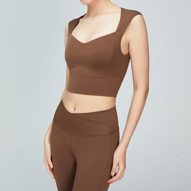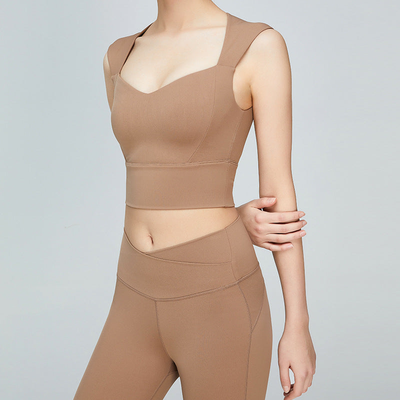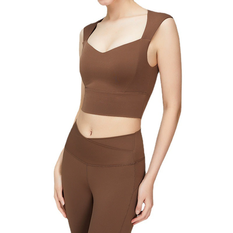 03/2025 Summer Yoga vest top Women with breast pad Beautiful back halter vest no underwire push-up bra