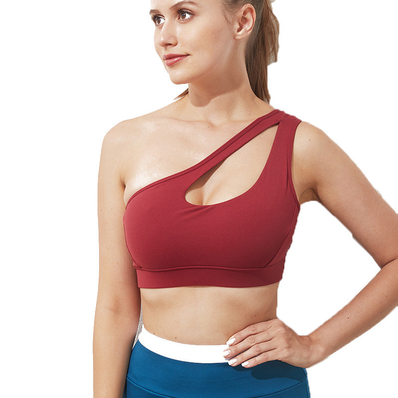 New cross-border special for one-shoulder hollow underwear shockproof quick-drying no steel ring sports bra elastic fitness bra