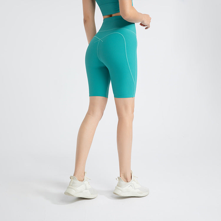New cycling pants women's comfortable high-elastic tight-fitting hip-lifting running training yoga fitness short sports five-point pants summer
