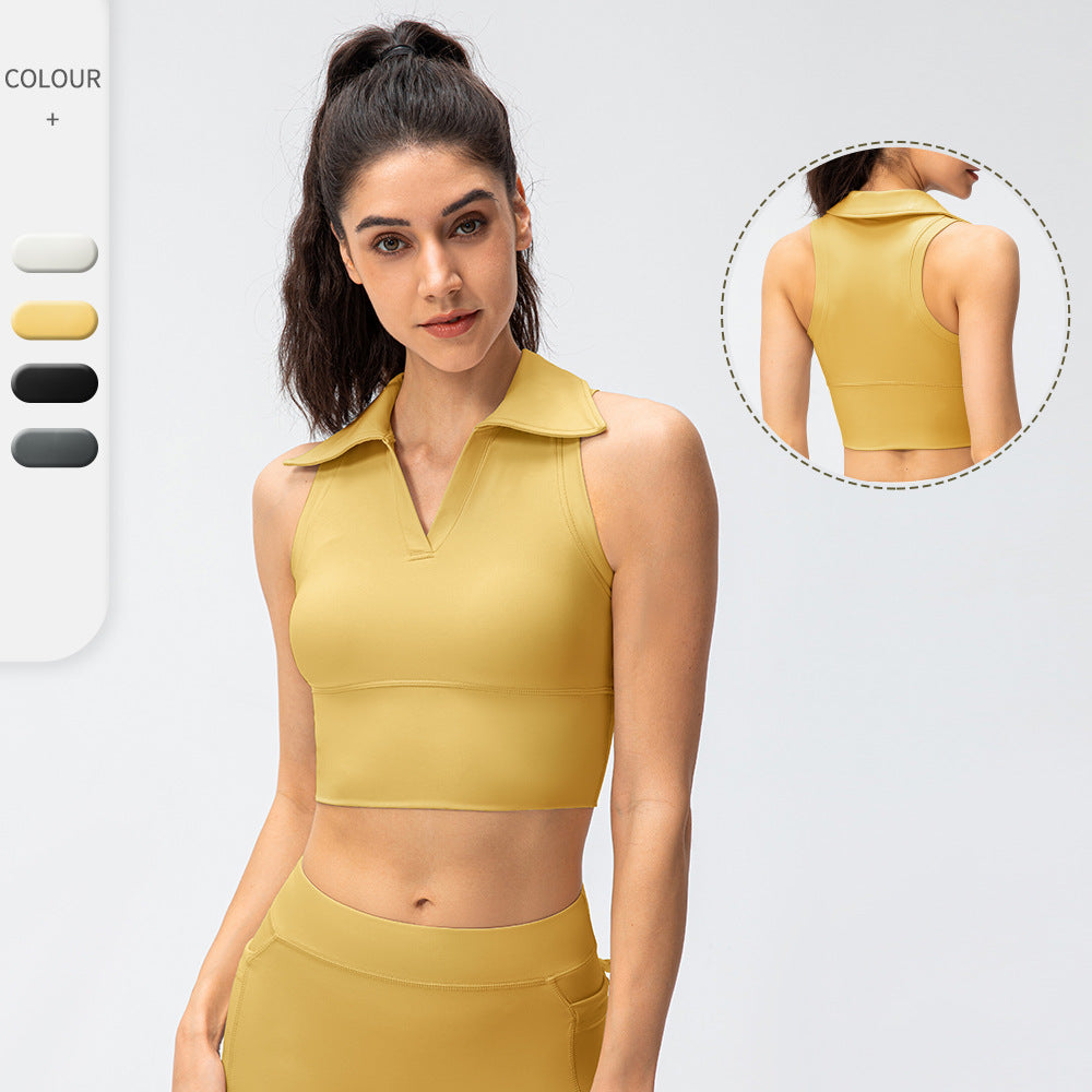 new female lapel tight yoga vest nude high waist fitness running sports vest top 22137