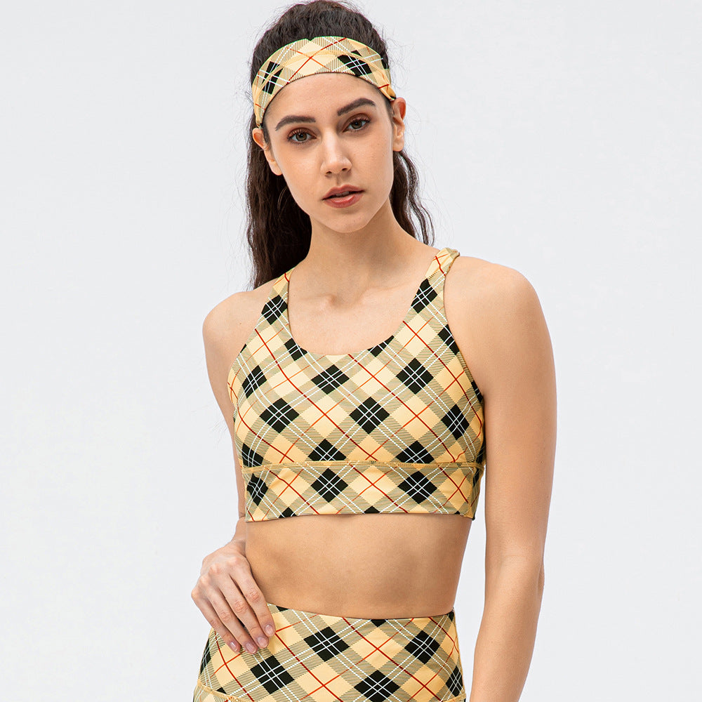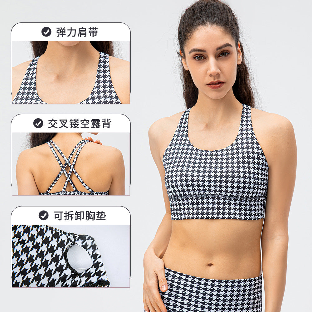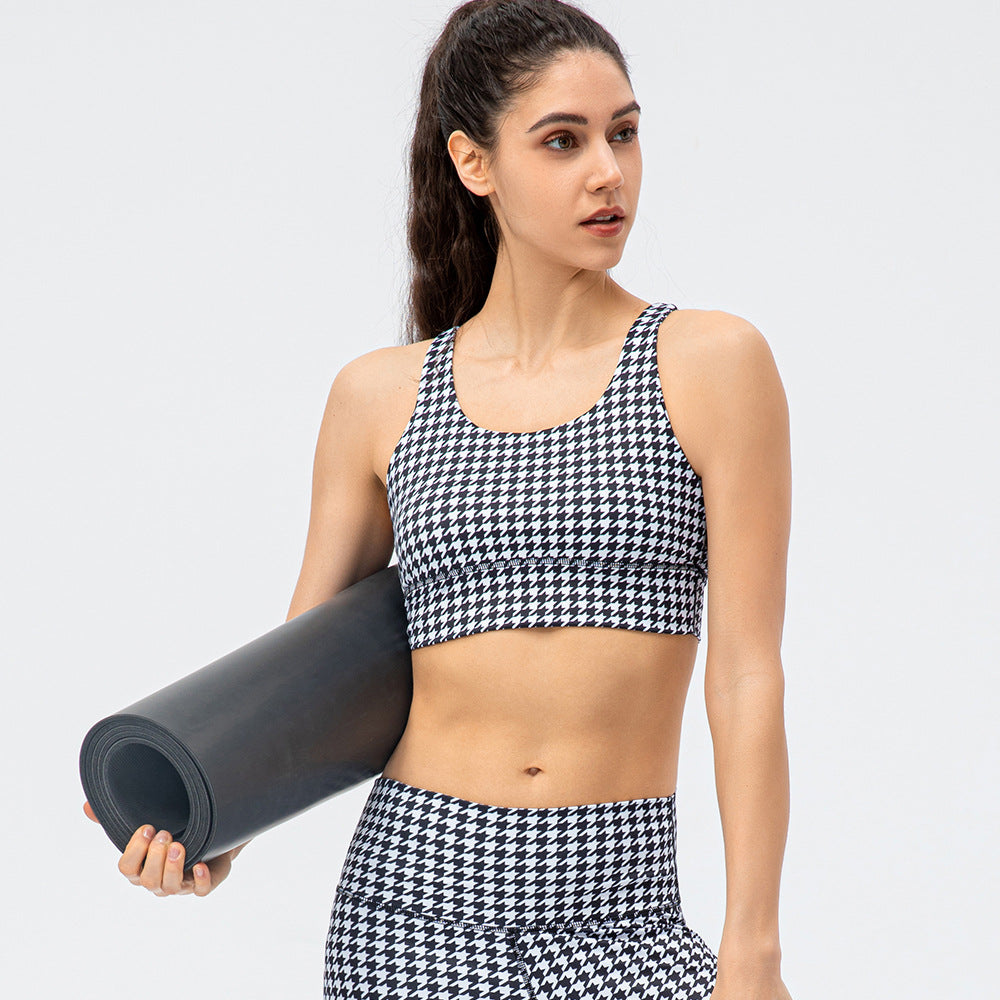 New nude yoga sports bra houndstooth shockproof running training vest with chest pad fitness Bra22733