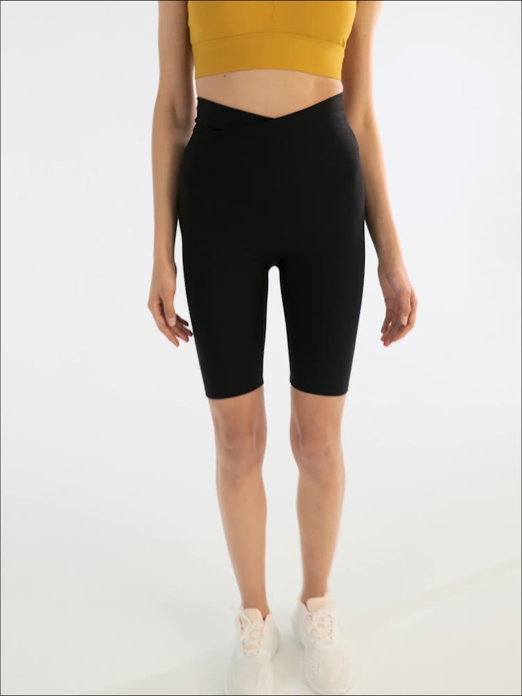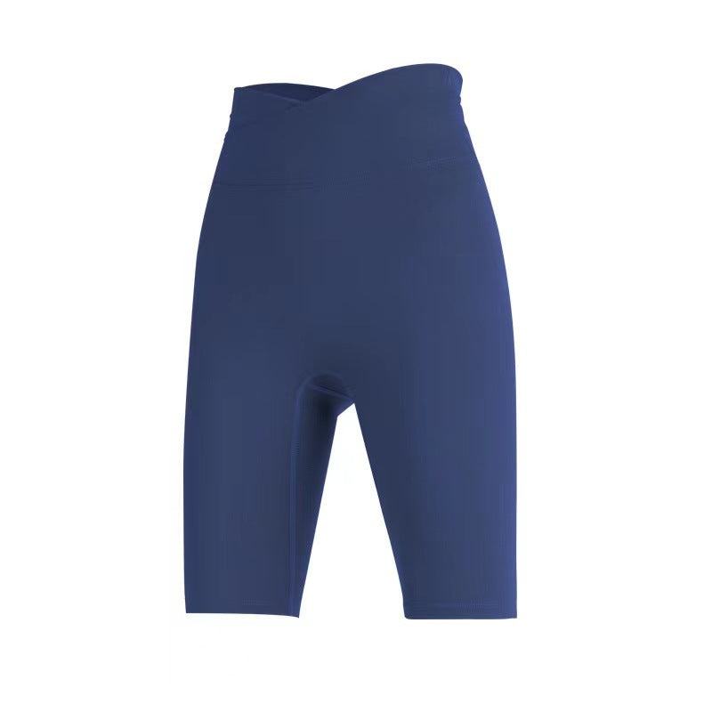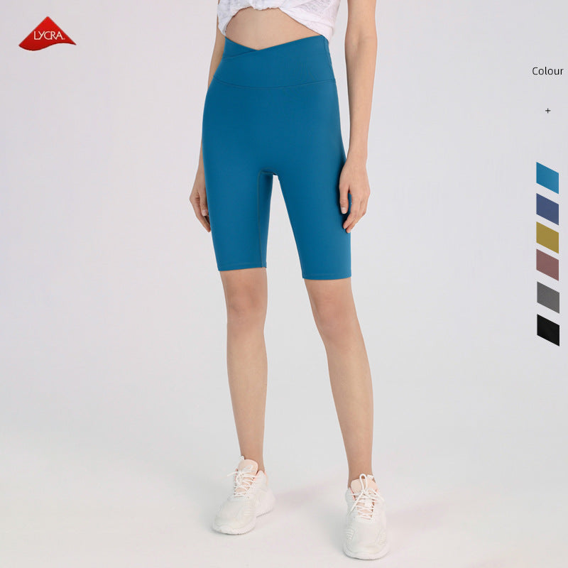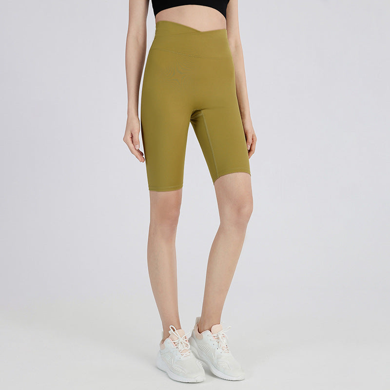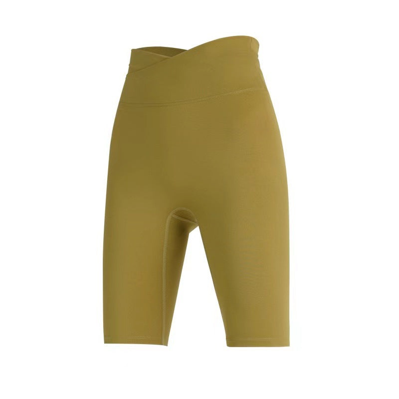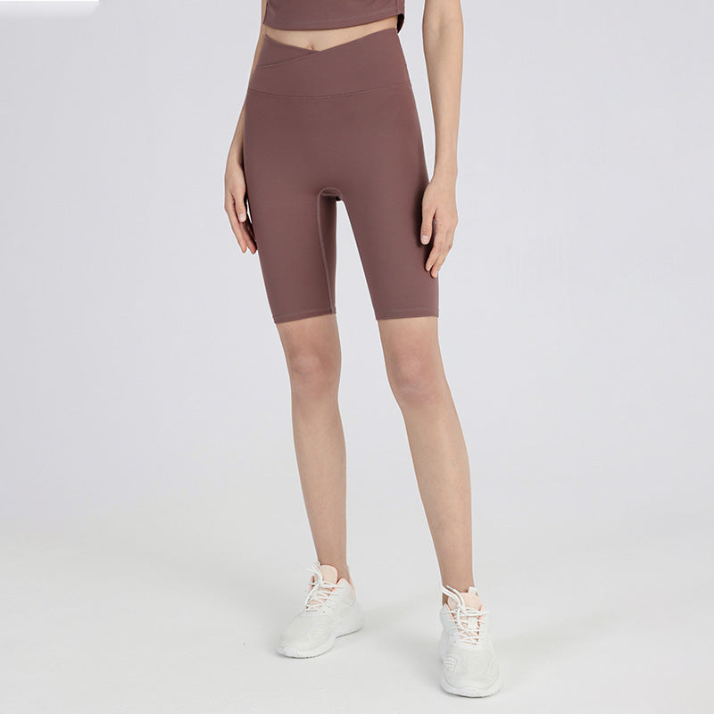 08/2024 Cross high waist yoga shorts tight nude peach hip sports shorts women's outdoor fitness pants 8843