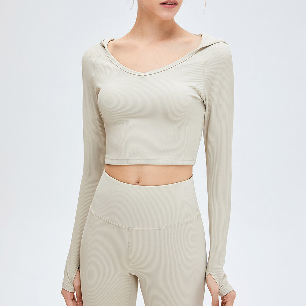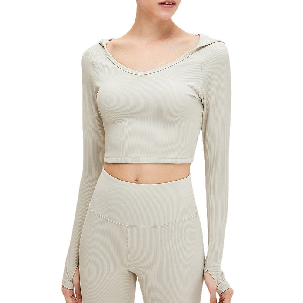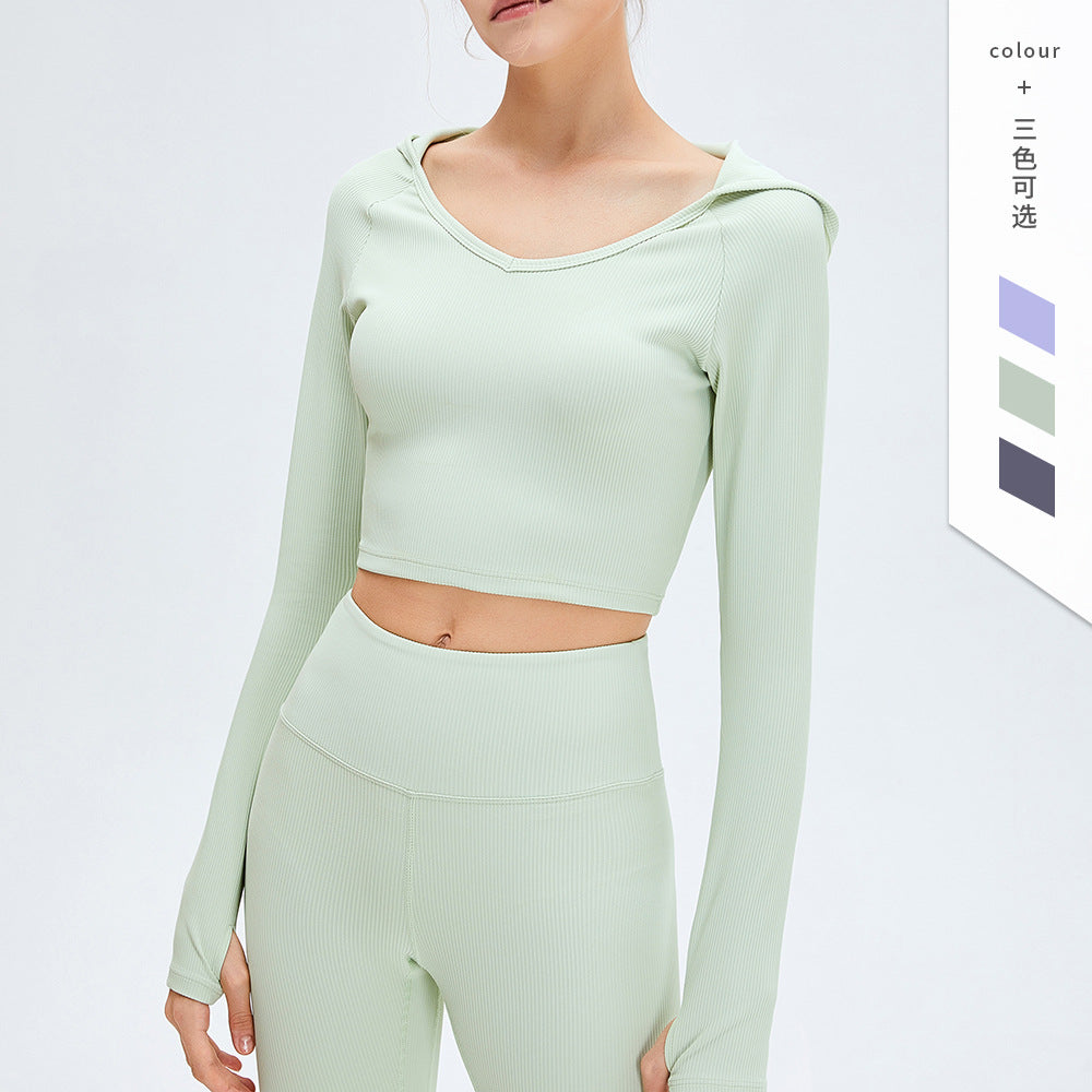 new threaded yoga clothes women's hooded elastic breathable sweat-absorbing running quick-drying fitness sports tops