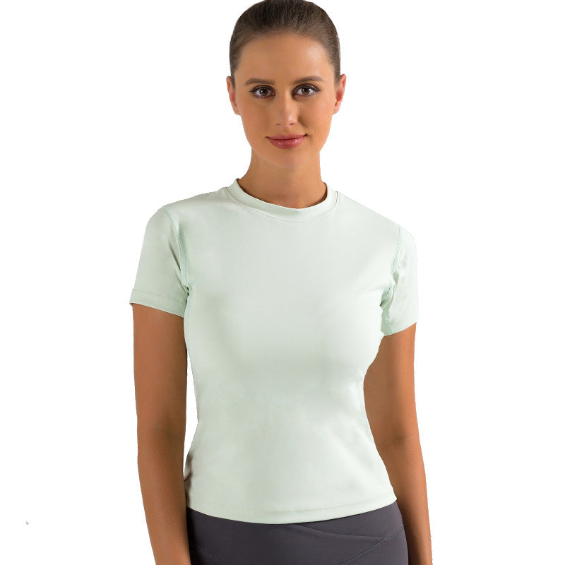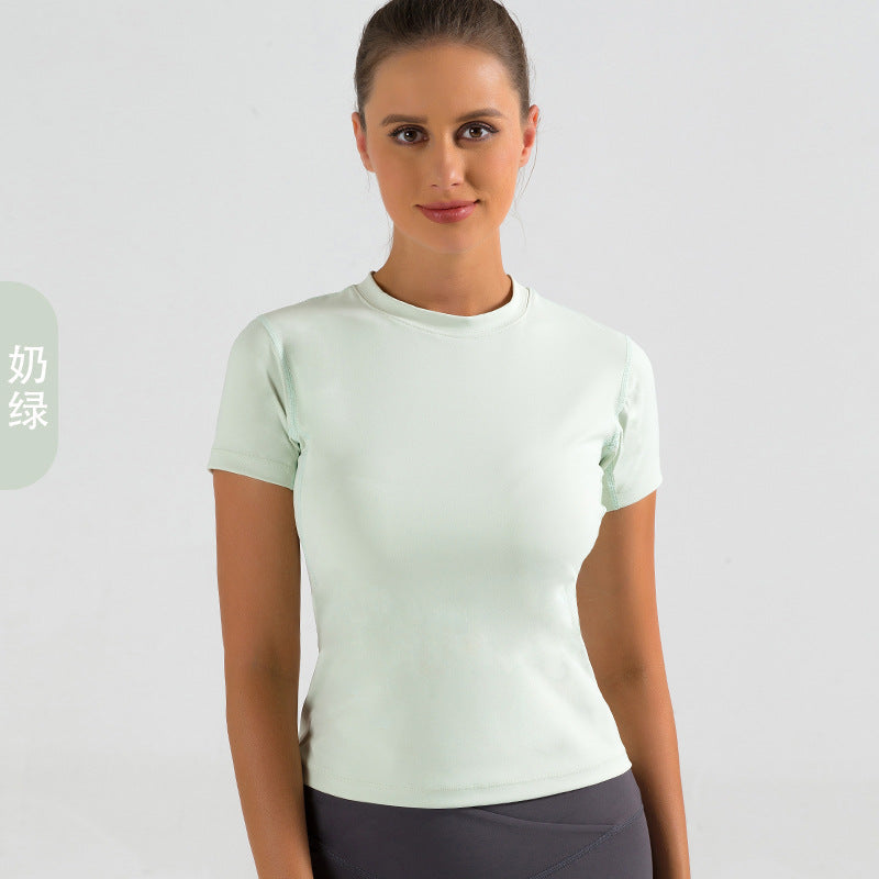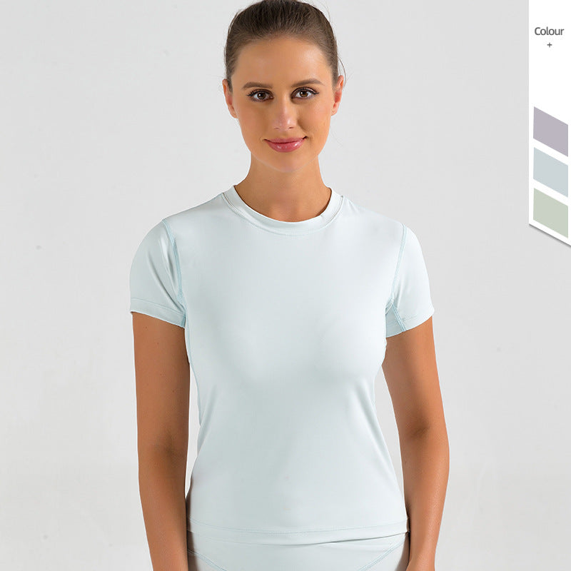 Nude yoga clothes short-sleeved women's tight-fitting breathable fitness stretch sports top running quick-drying T-shirt