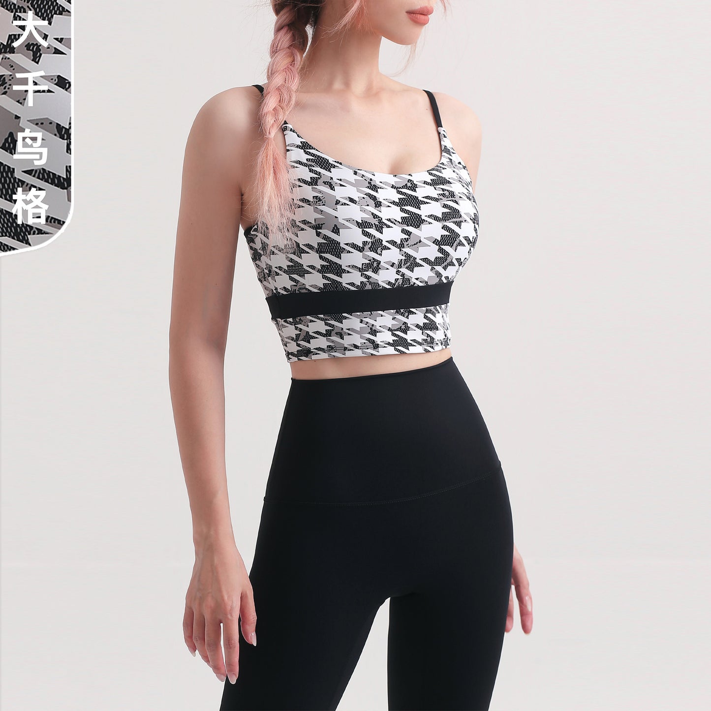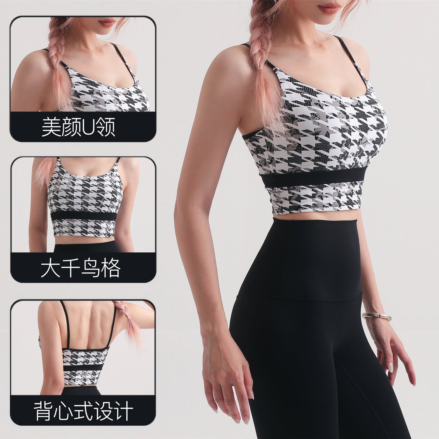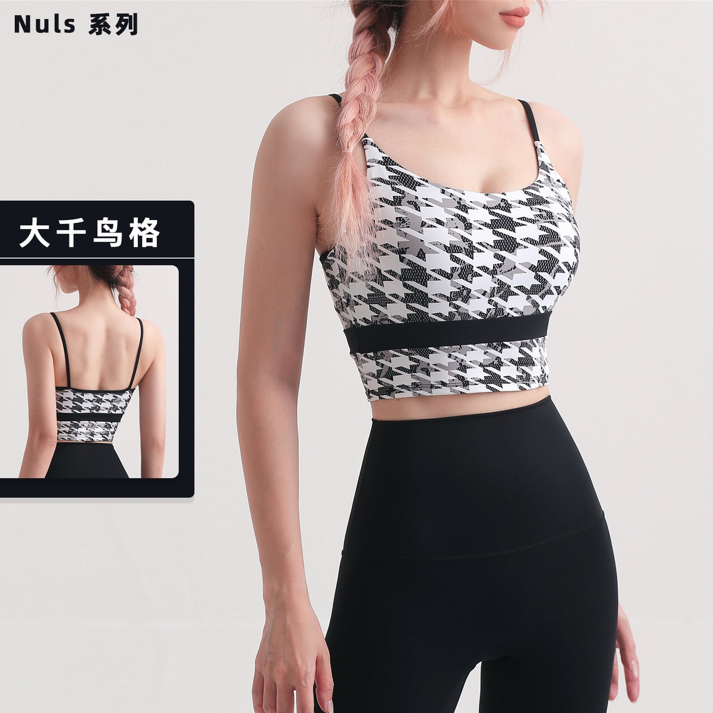 NULS large houndstooth sling yoga bra U-neck fashion sports underwear women's vest style sports beautiful back