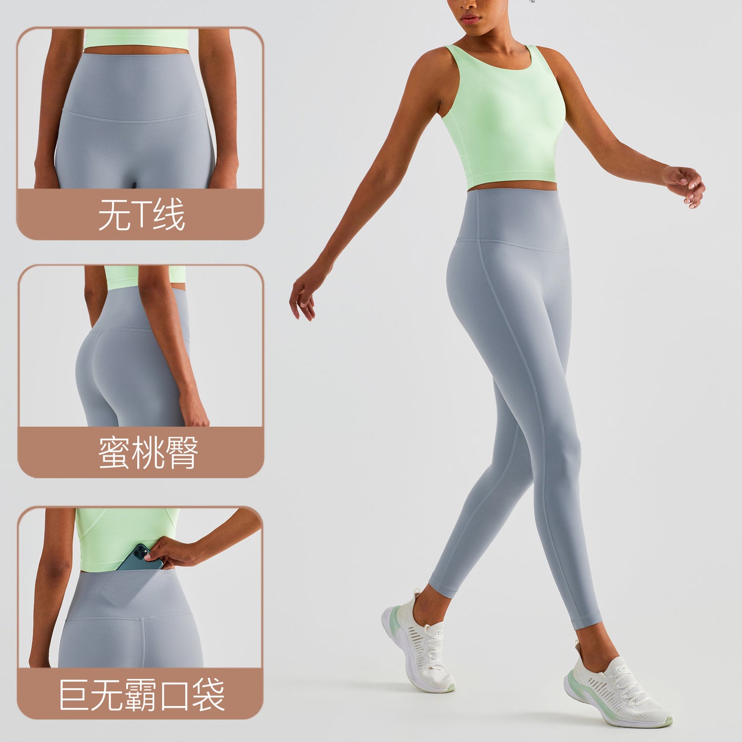 one-piece high-end nude yoga pants pocket tight high waist abdomen peach hip pants