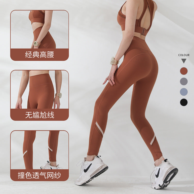 Peach hip lift yoga clothes wear color fitness pants women's high waist running sports autumn and winter quick-drying tights