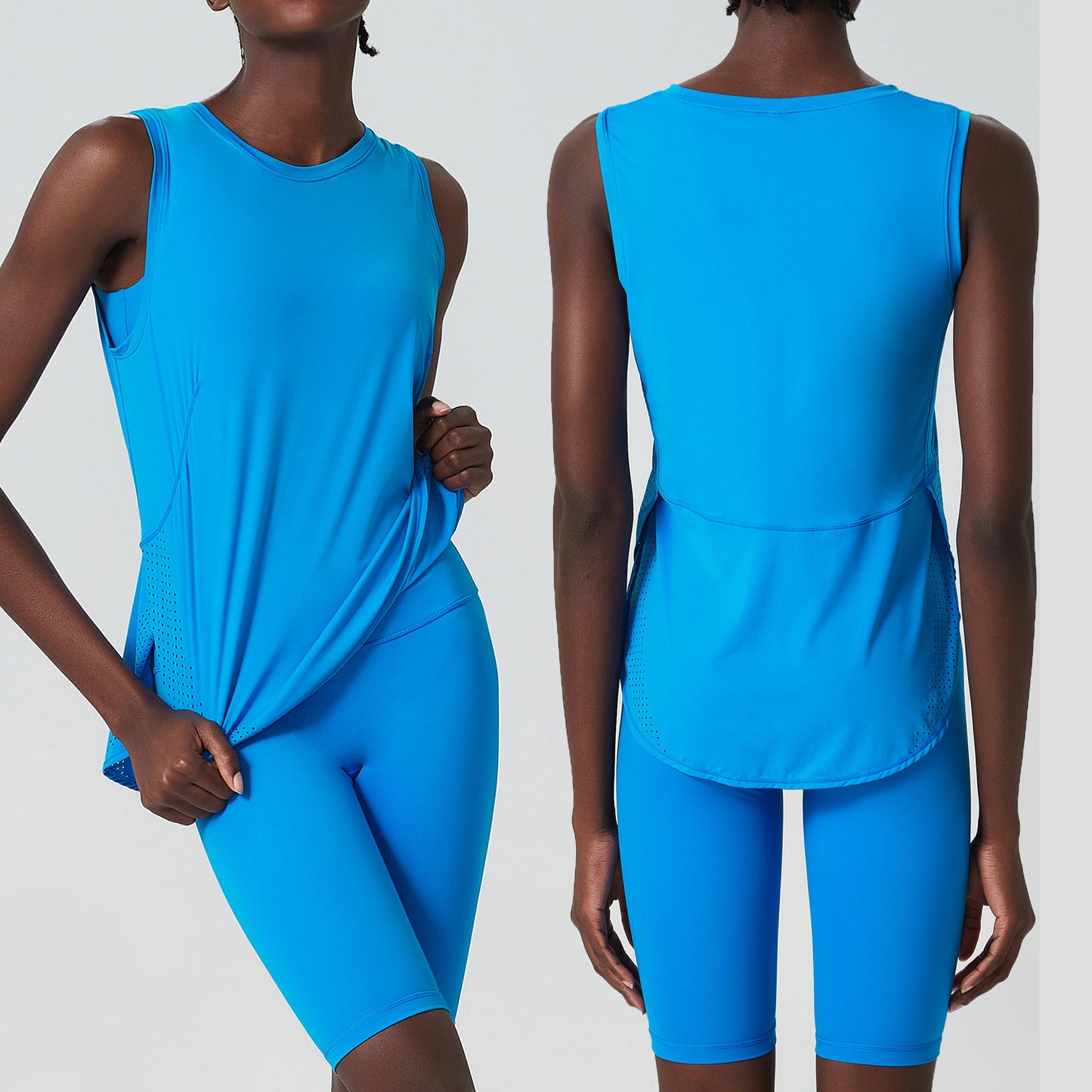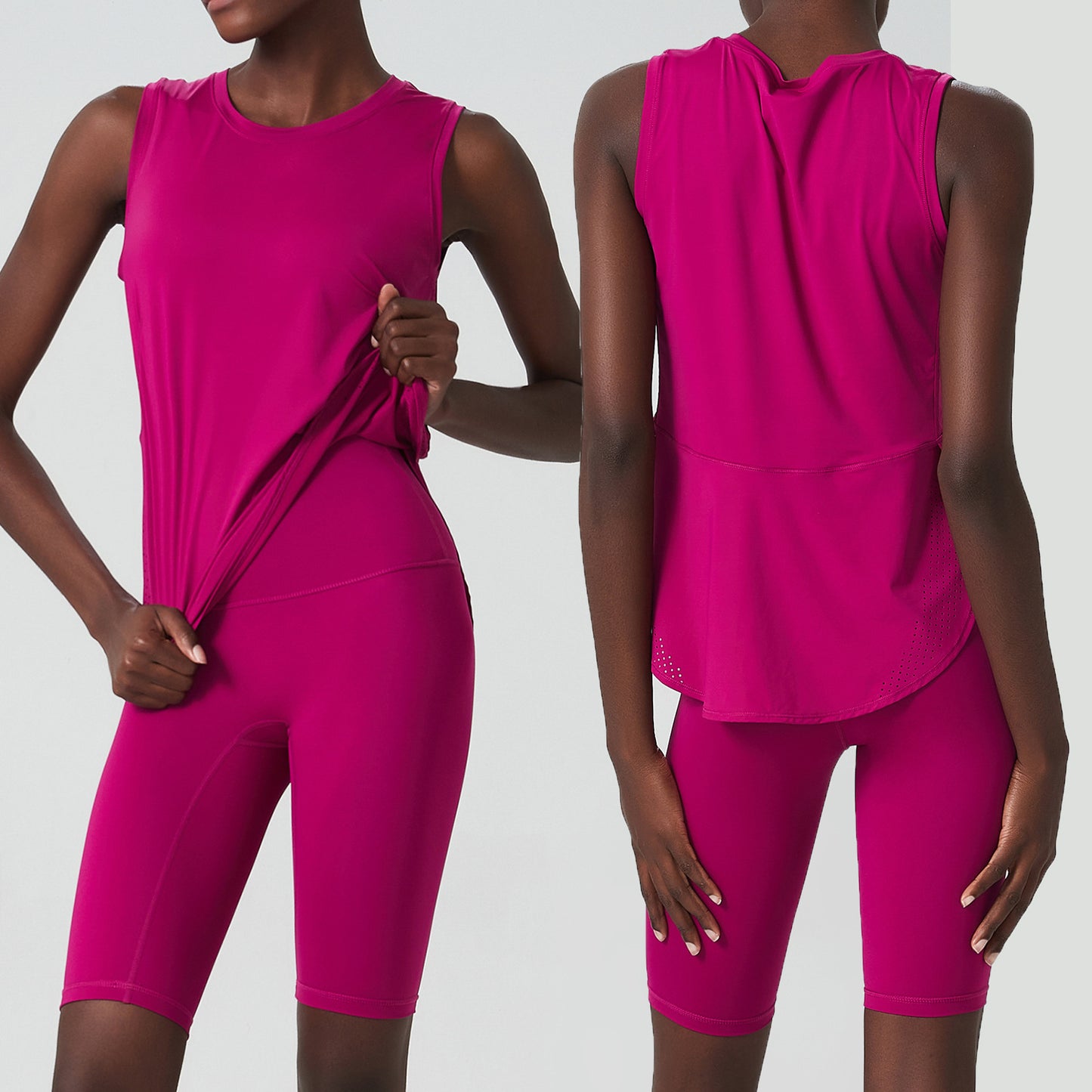 running sleeveless vest shorts fitness suit high waist yoga sportswear two-piece set large size cycling pants