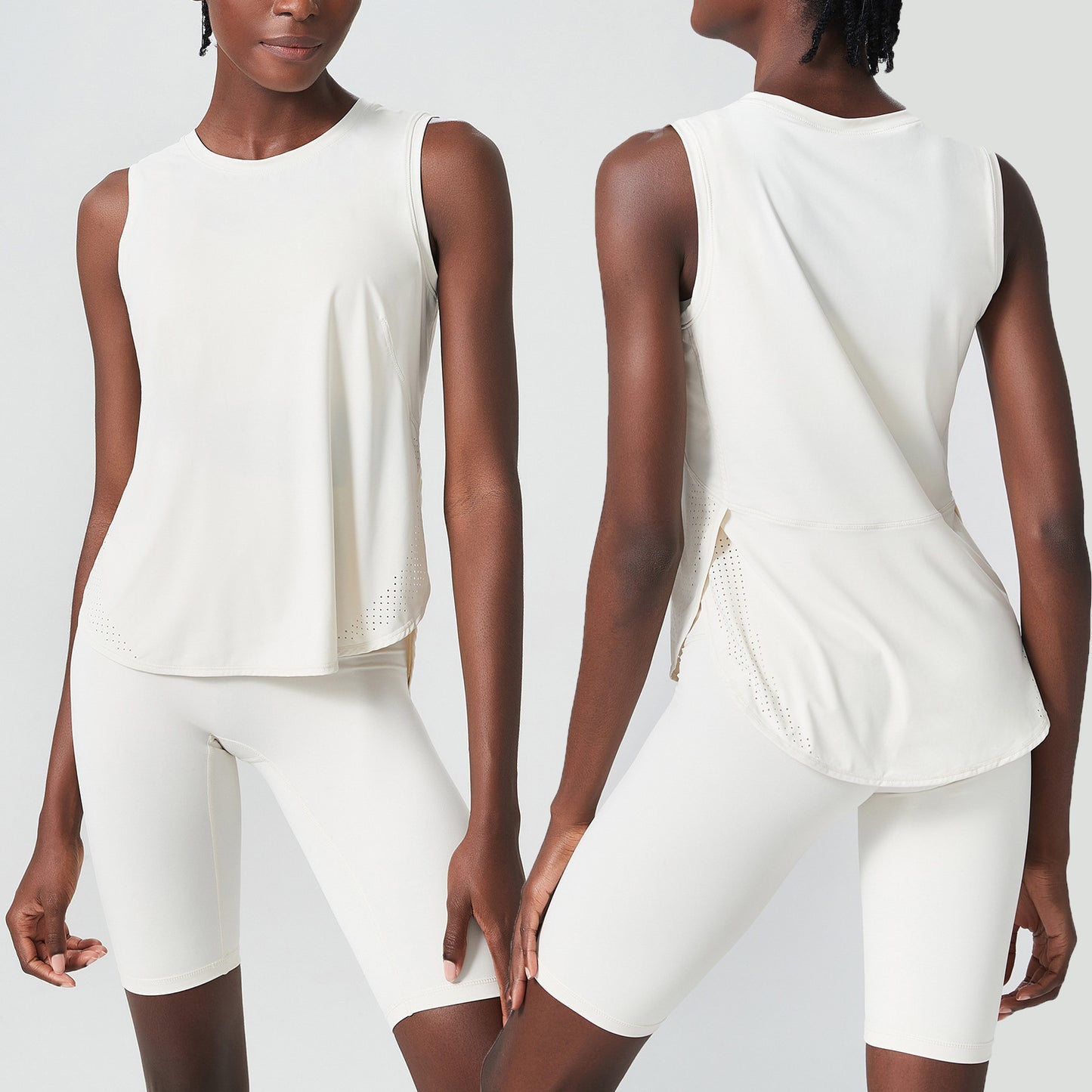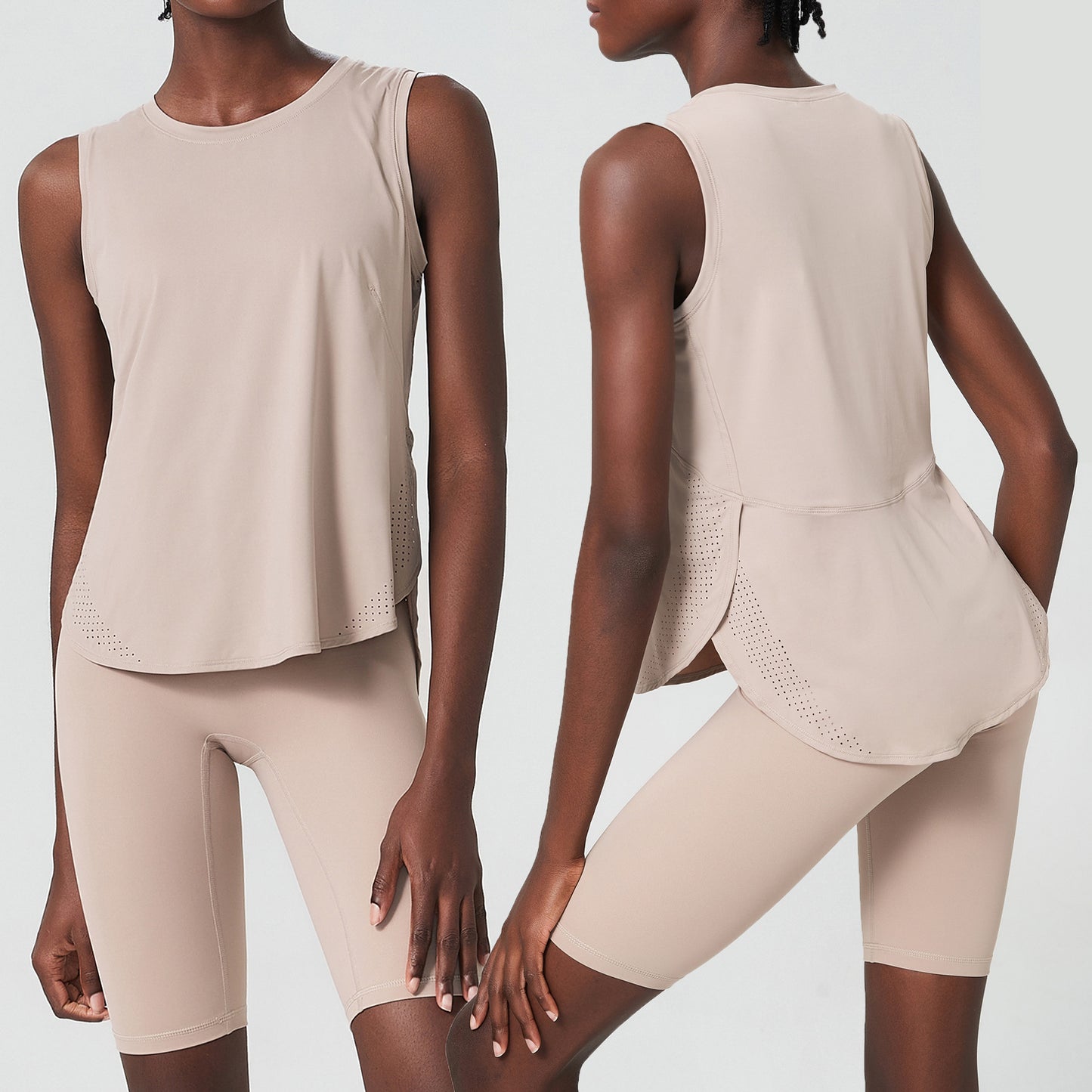 color: TT2372 sleeveless + LPH2355 five-point pants two-piece set black, TT2372 sleeveless + LPH2355 five-point pants two-piece set dark powder, TT2372 sleeveless + LPH2355 five-point pants two-piece set ethereal blue, TT2372 sleeveless + LPH2355 five-point pants Two-piece set of ivory white, TT2372 sleeveless + LPH2355 five-point pants two-piece set graphite gray, TT2372 sleeveless + LPH2355 five-point pants two-piece milk oatmeal