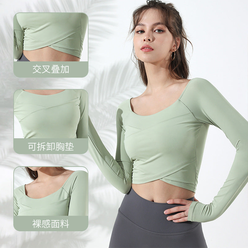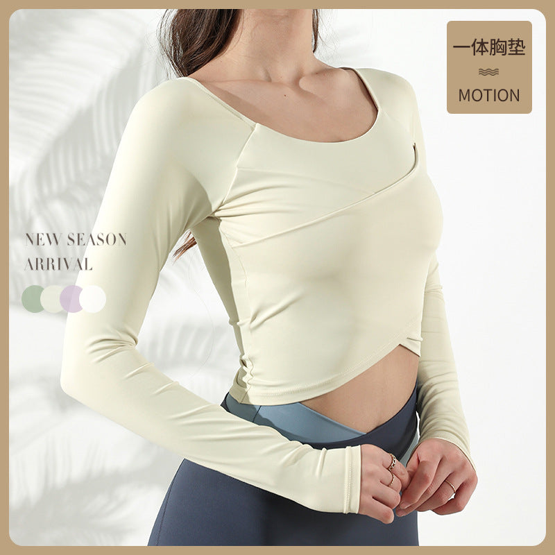 small breasts show big autumn and winter long-sleeved running fitness net red yoga clothes female Pilates with chest pad sportswear