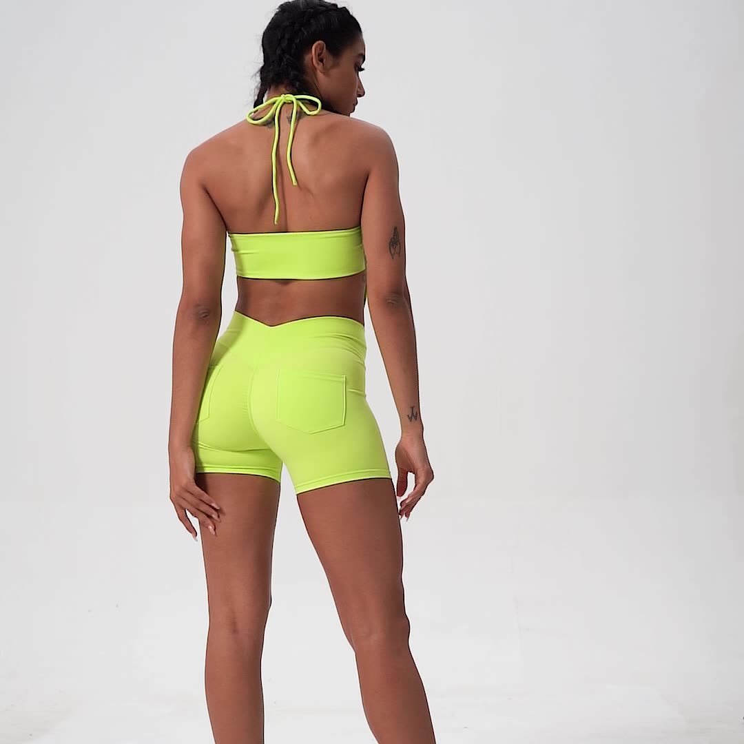 2024 new colors 2022 spring and summer new high waist shorts nude T-line yoga pants women's European and American peach hip lift three-point fitness pants