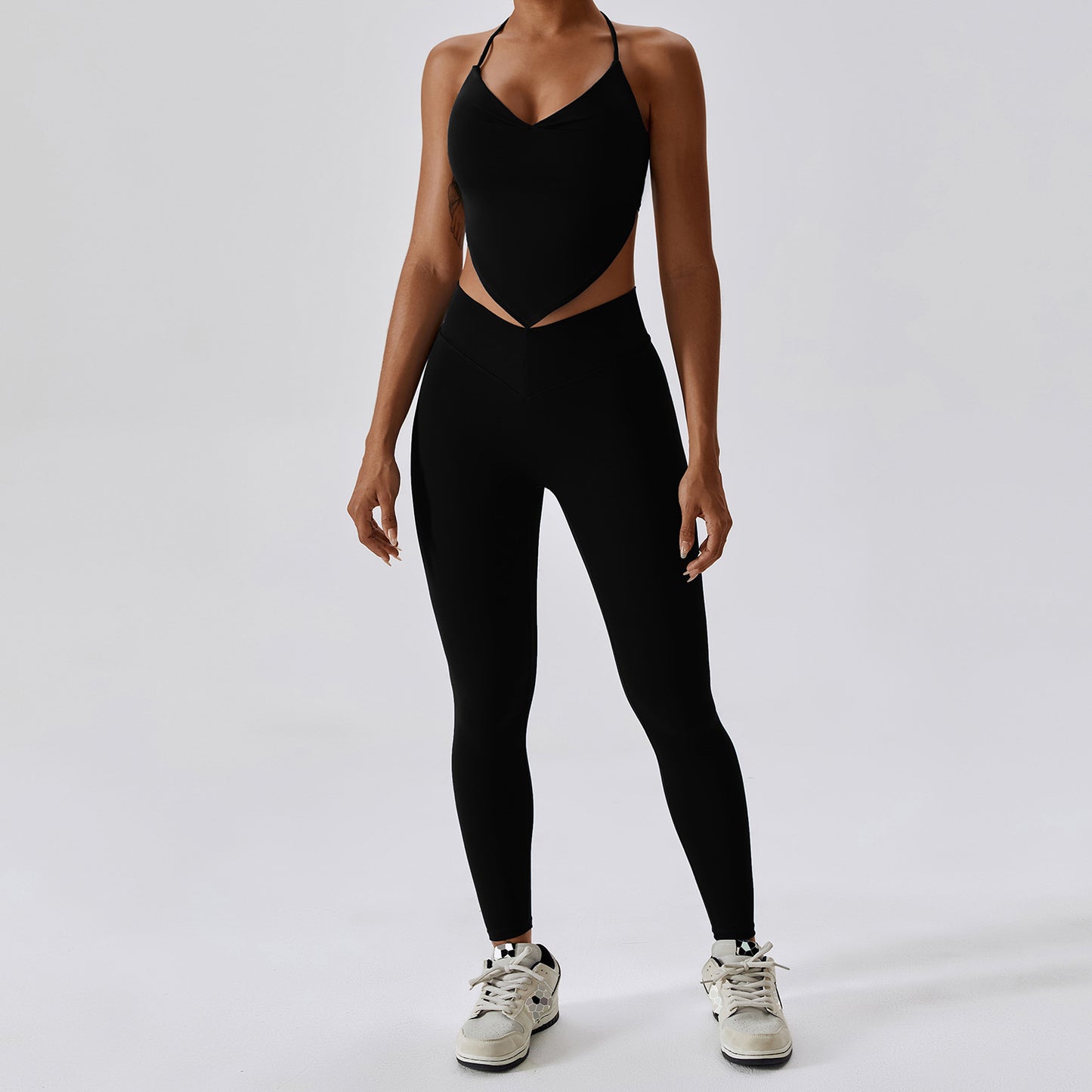 08/2024 TZ8843 link-1 Cross high waist sports suit women's contrast color backless tight nude yoga suit running fitness yoga clothes 8843