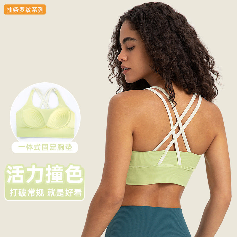 01/2025 LINK-2 New cross-border cross back shock-proof folding sports underwear Nude skin Breathable Yoga bra S2010