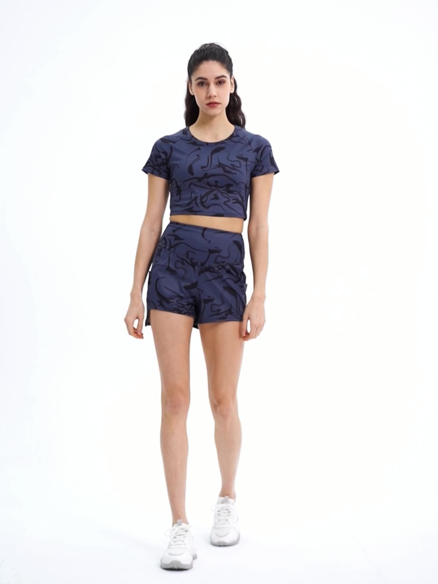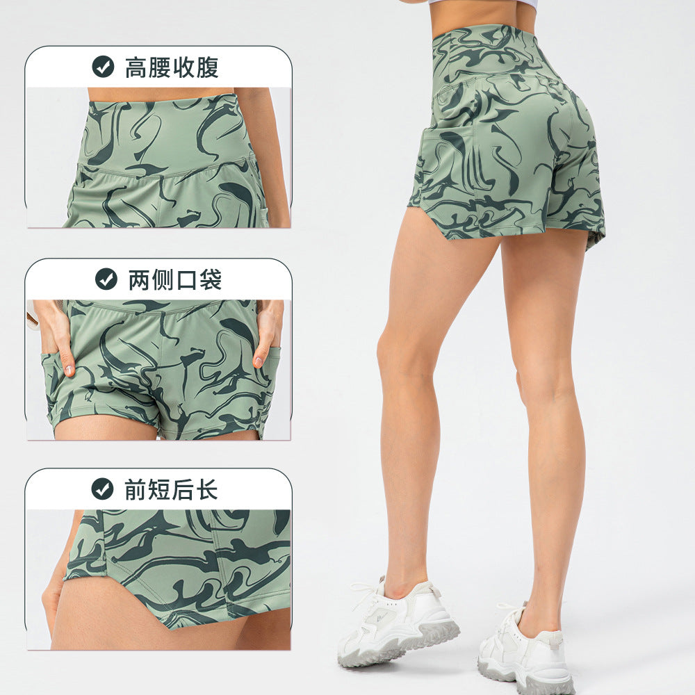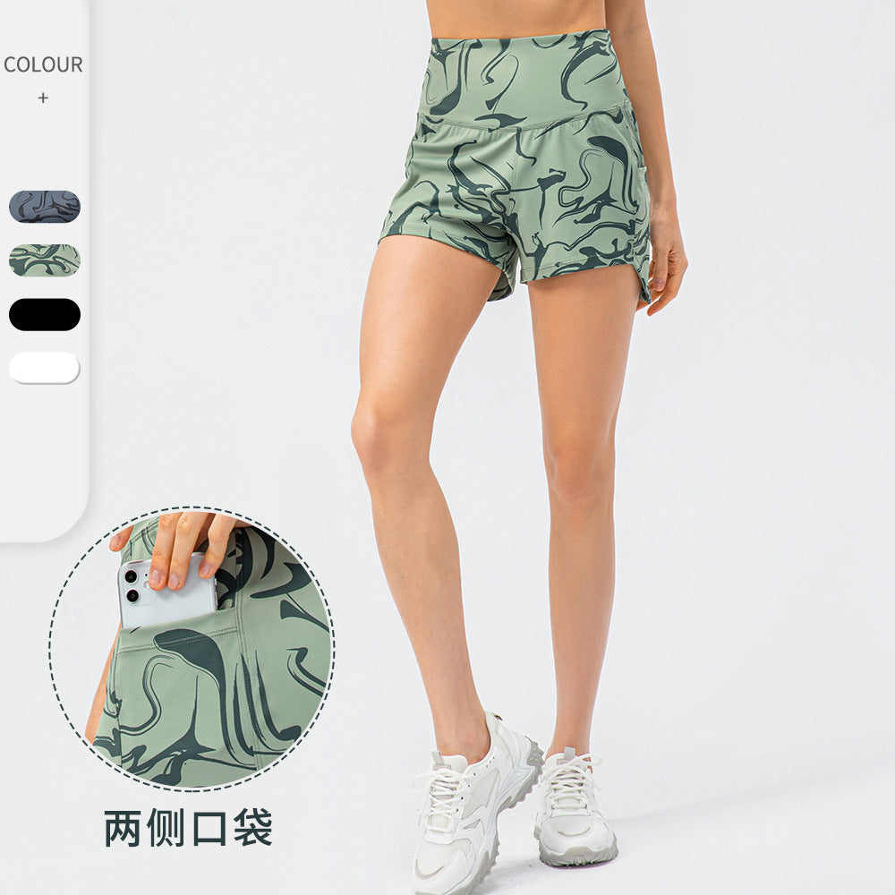 Spring and summer new women's tennis sports shorts printing nude loose high waist running casual fitness shorts 22439