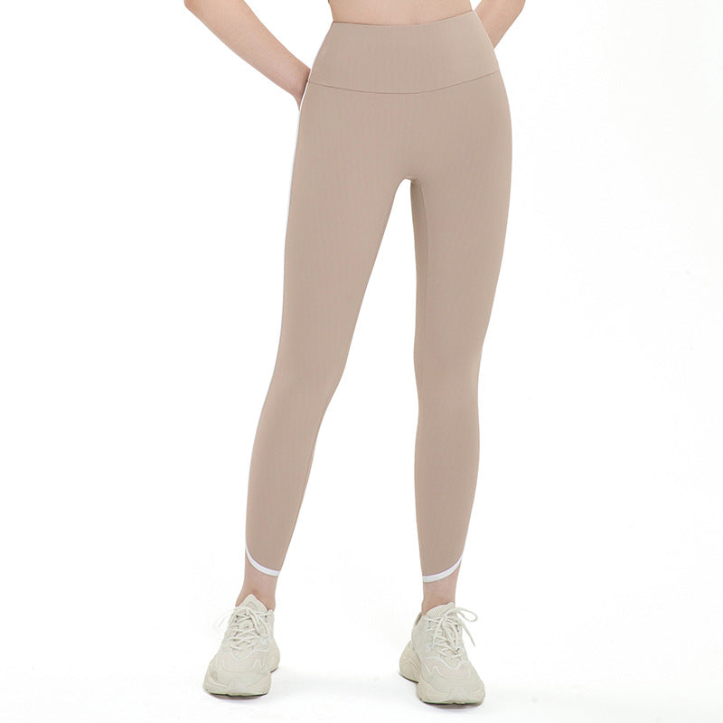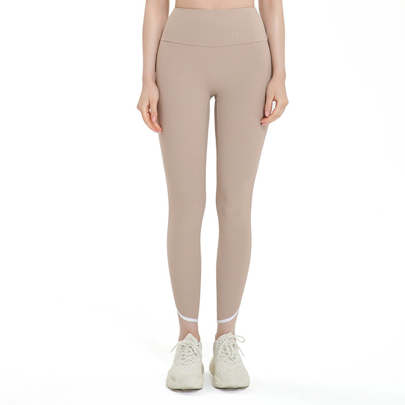 Spring and summer no embarrassment line high waist sports fitness pants elastic hip tights ribbed white white nude yoga pants women