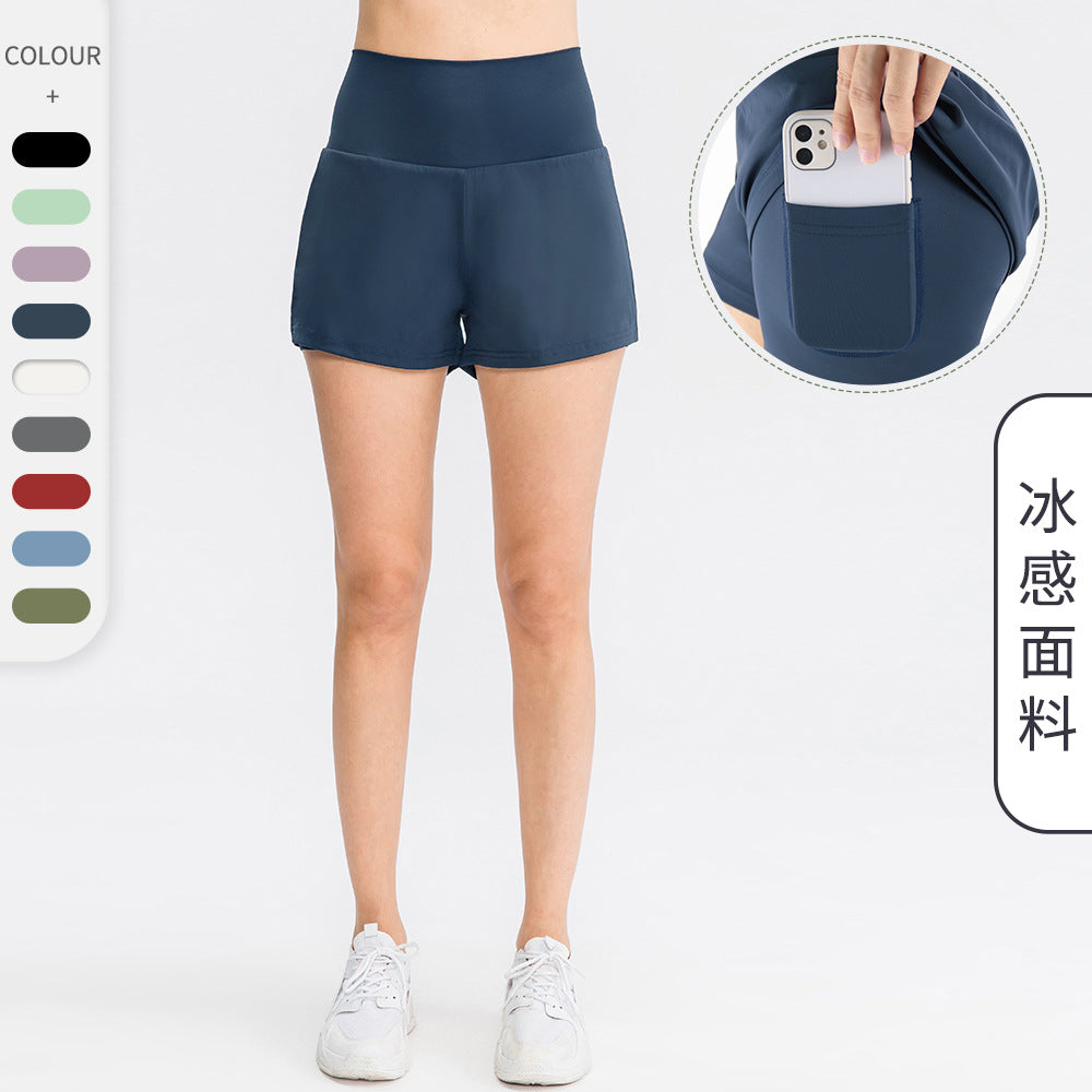 Spring and summer pocket yoga sports shorts female nylon ice quick-drying fitness running loose tennis shorts 02414
