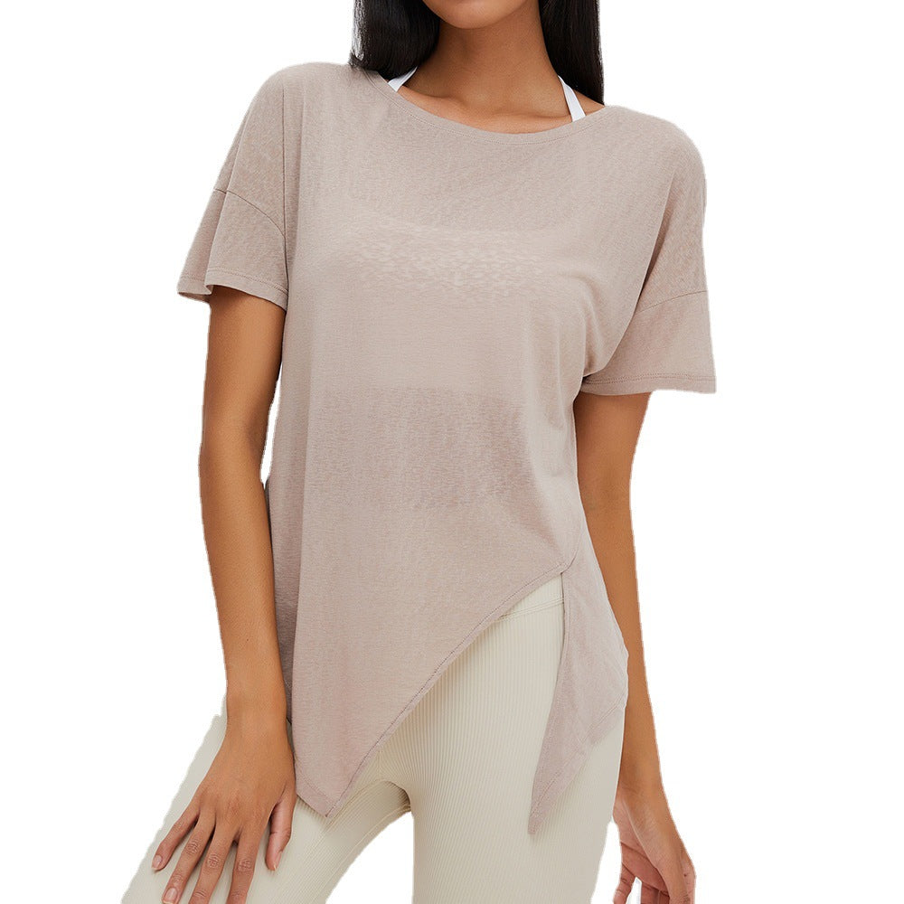 summer new yoga clothes women's short-sleeved T-shirt breathable loose side slit sports fitness top