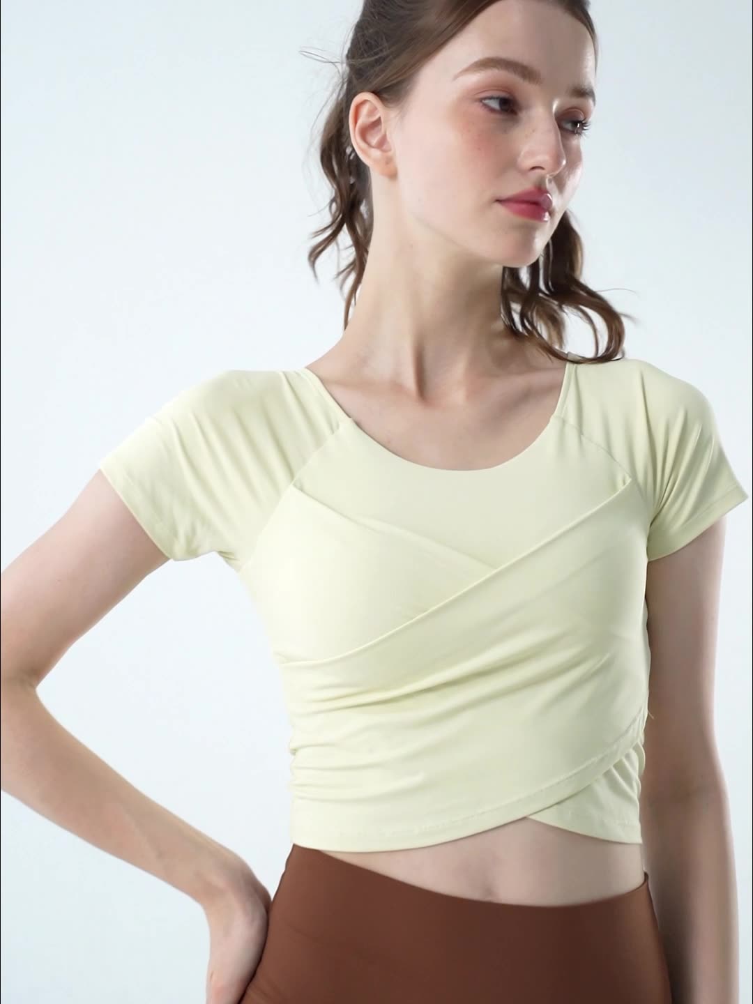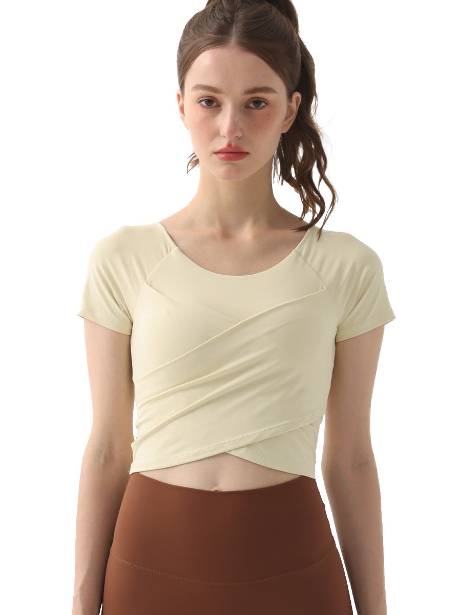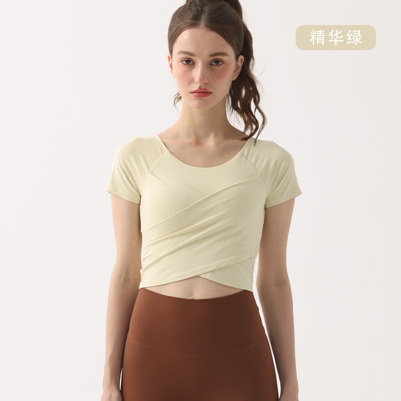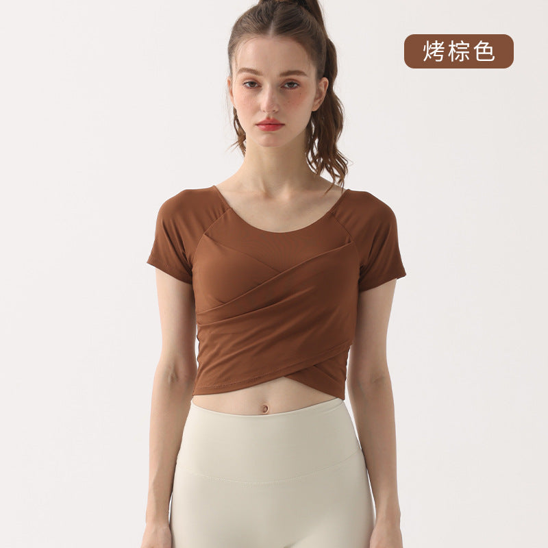 Summer thin section with chest pad short-sleeved t-shirt running sports slim cross top yoga breathable quick-drying fitness clothes