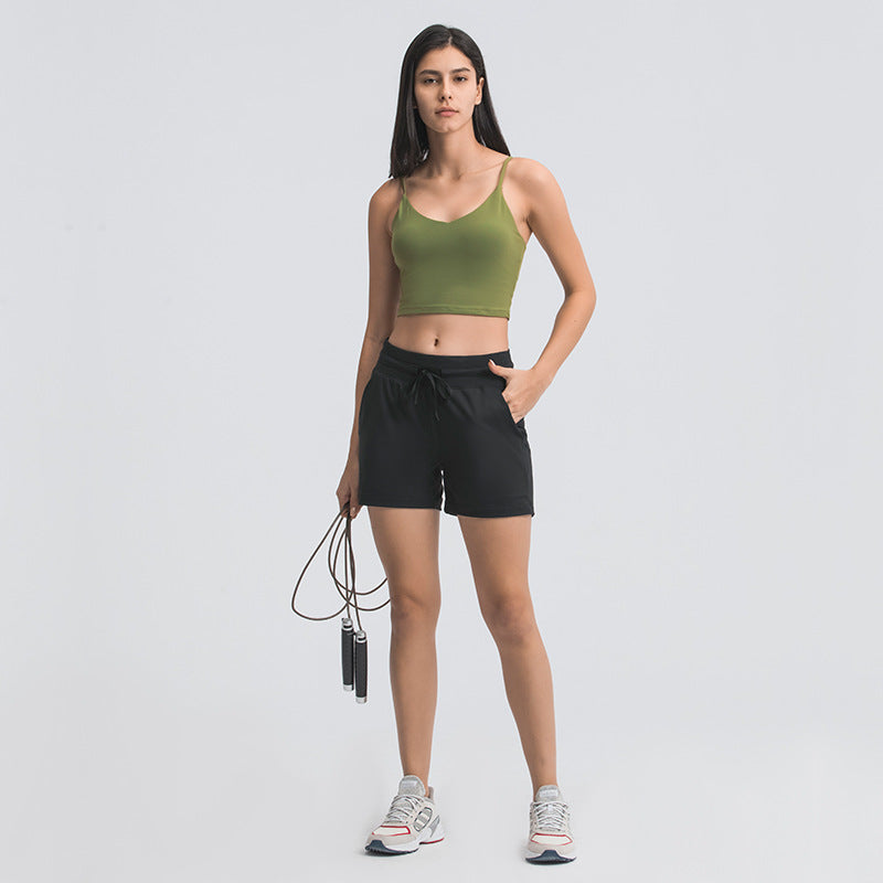 2022 new triangle beauty back fitness sports bra thin shoulder straps gathered nude yoga bra