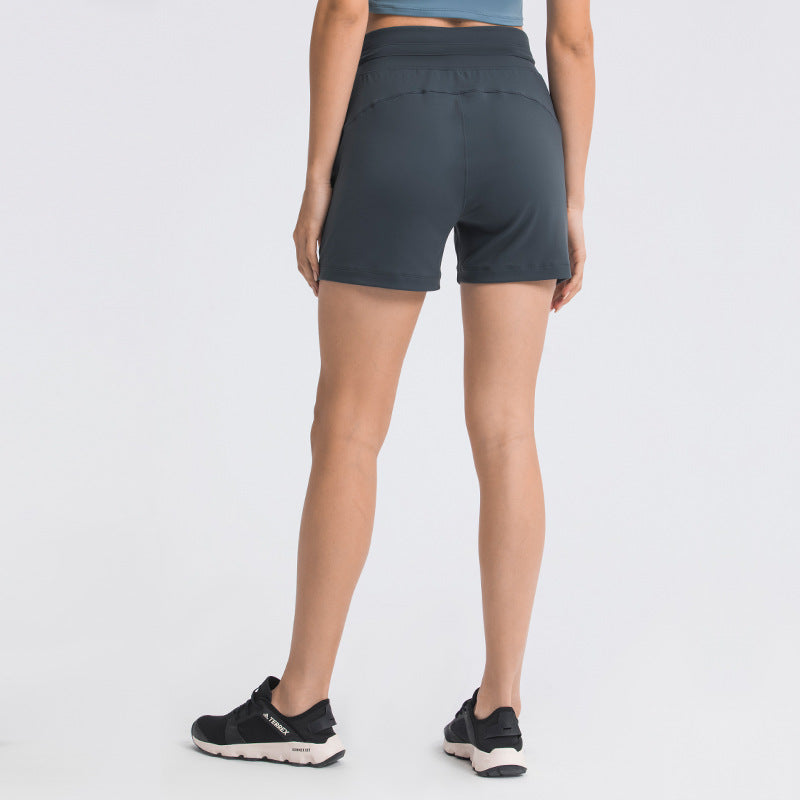 08/2024 Cross high waist yoga shorts tight nude peach hip sports shorts women's outdoor fitness pants 8843