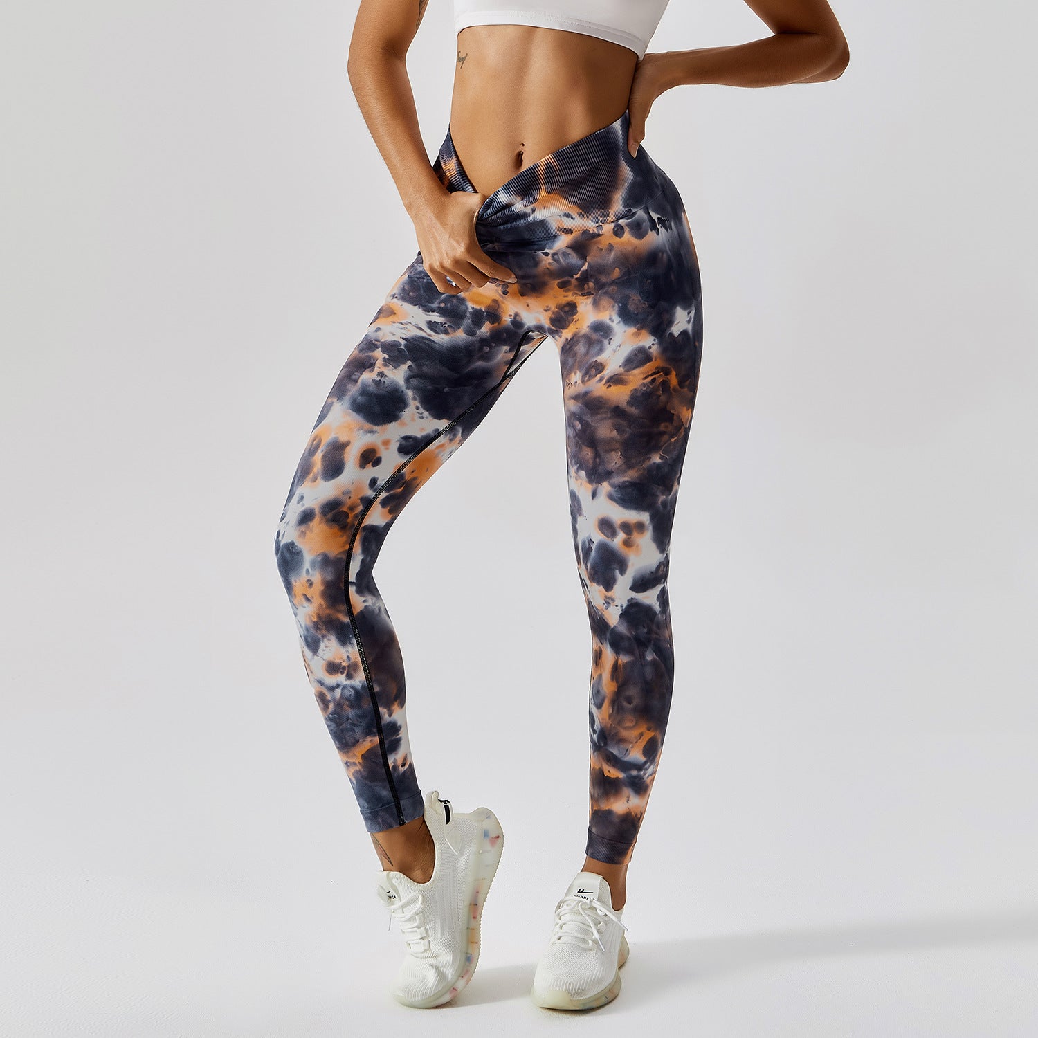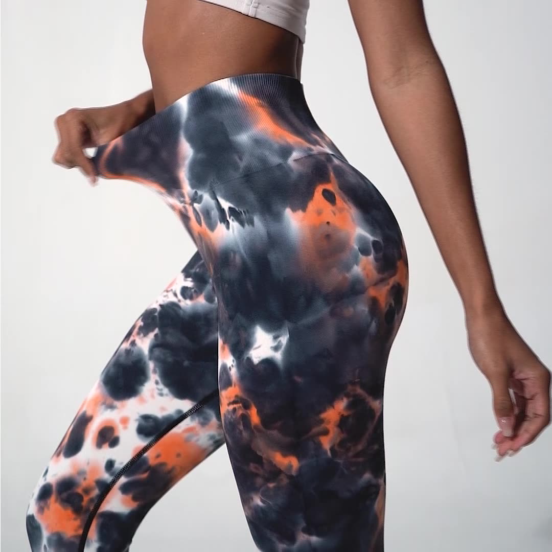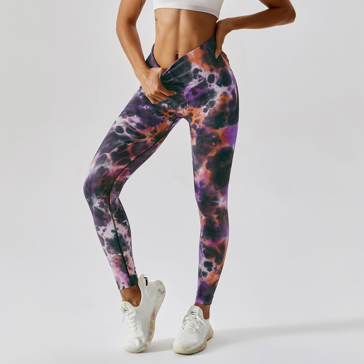 tie-dye seamless yoga pants women's high waist tight running sports pants outerwear peach hip-lifting fitness pants