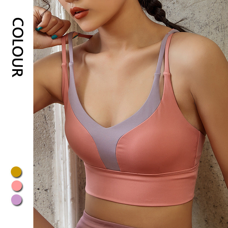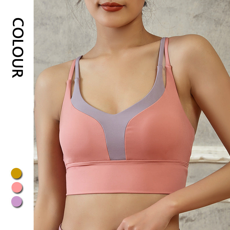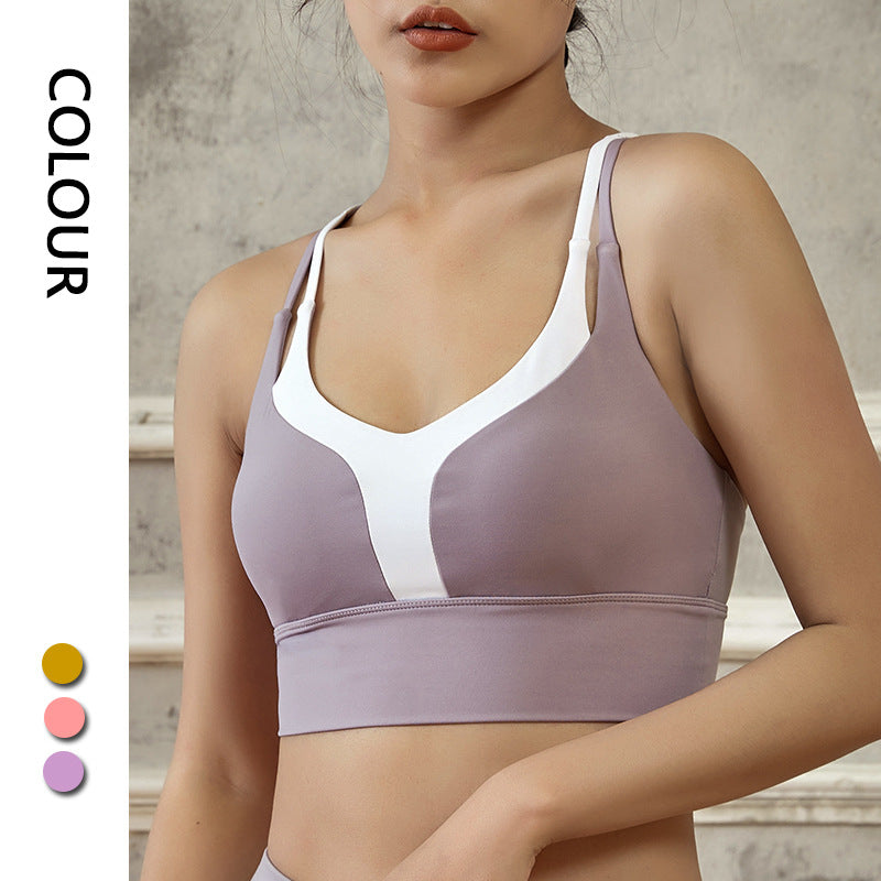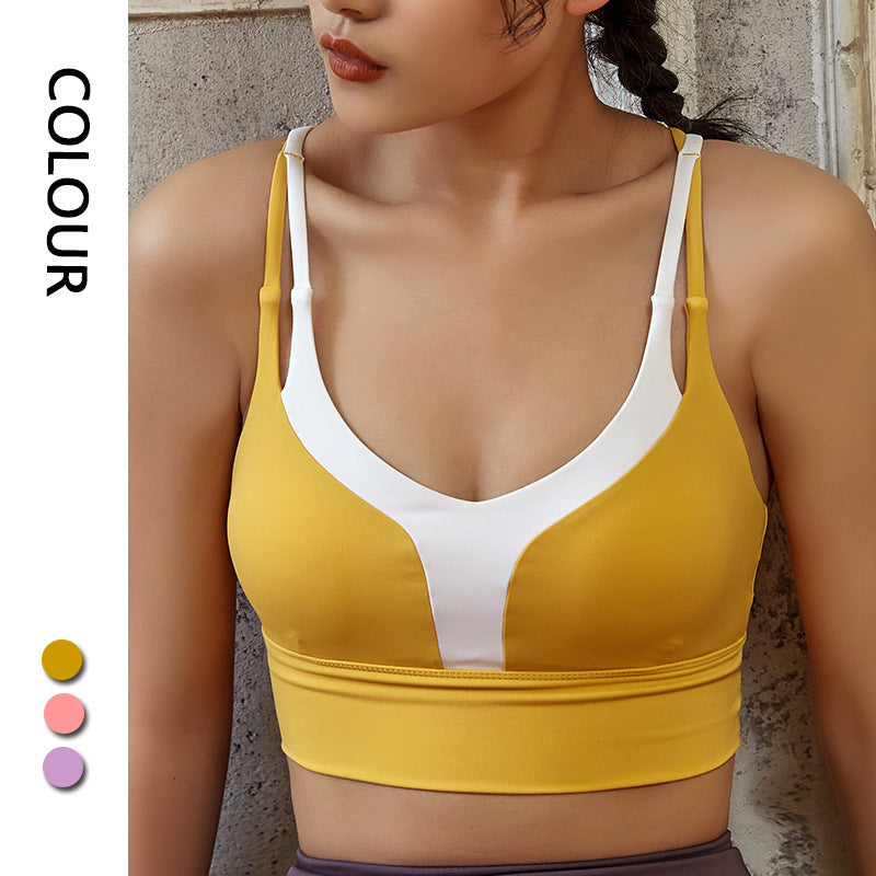 Women's Korean version of the contrast color strap sports bra Amazon yoga vest lengthened running sports fitness underwear BRA