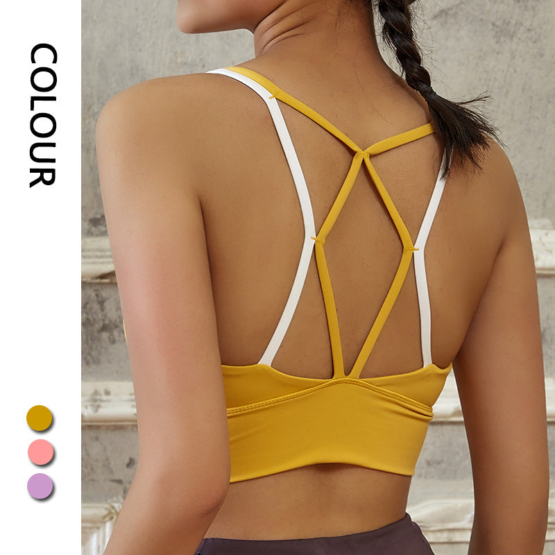 2022 new triangle beauty back fitness sports bra thin shoulder straps gathered nude yoga bra