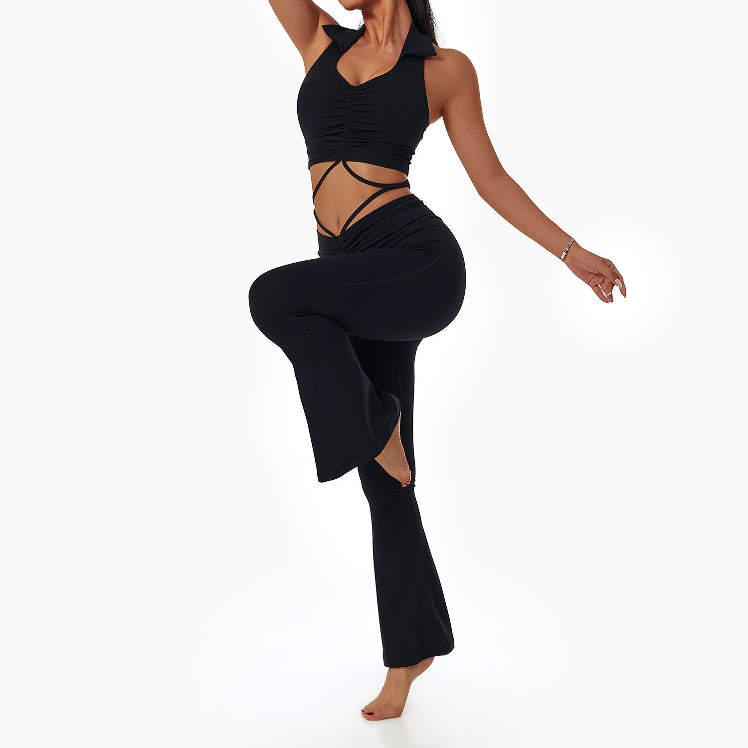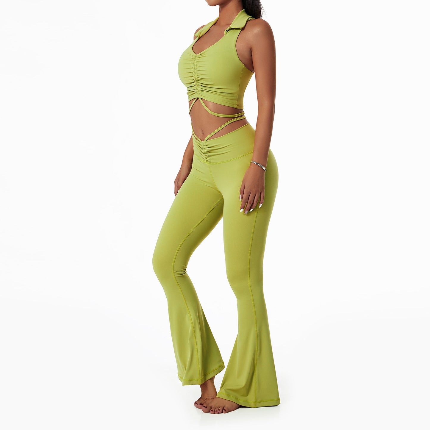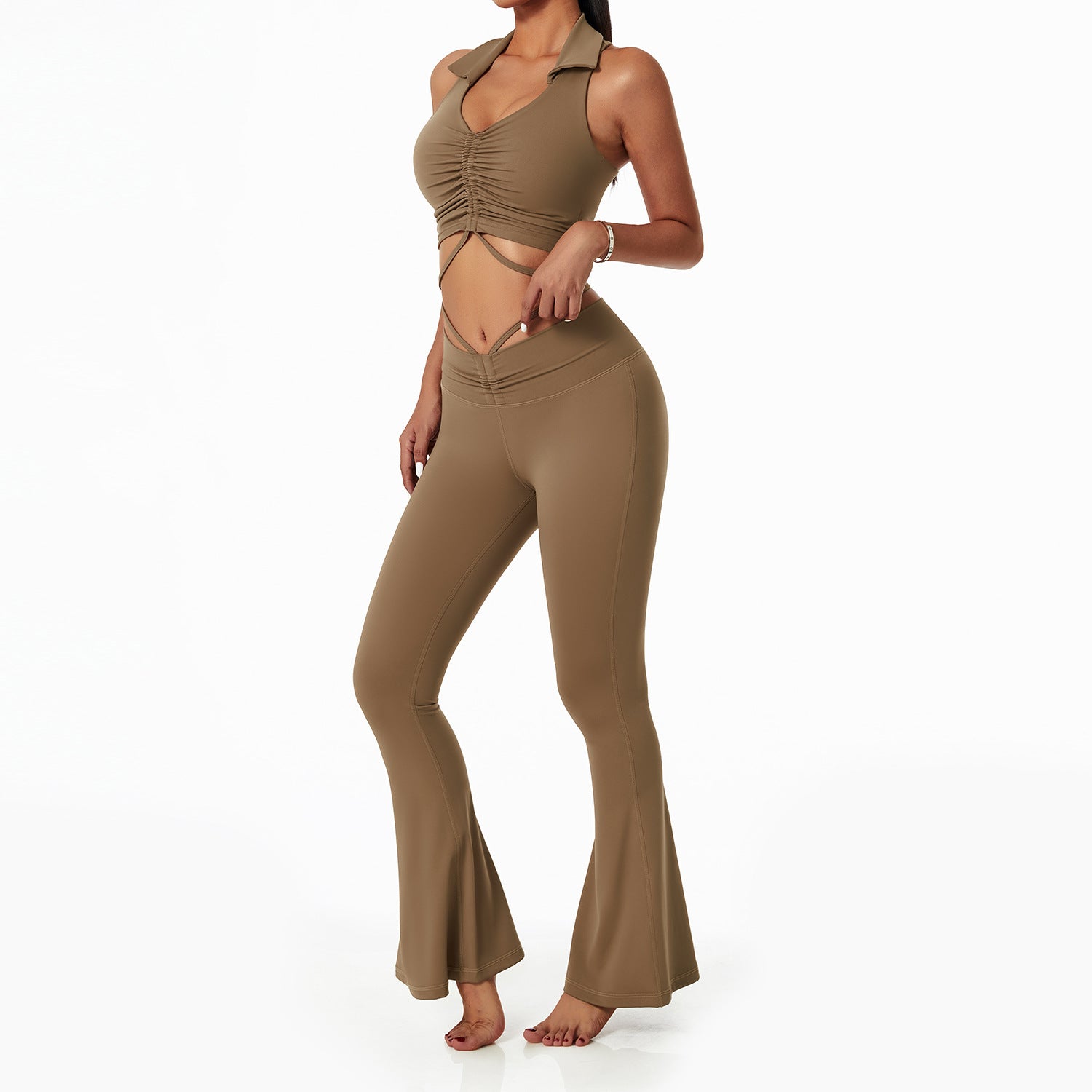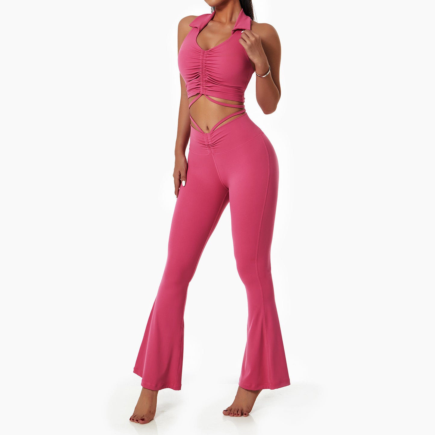 Yoga Clothing Suit Women's Fashion Gym Net Red Drawstring Lapel Sports Fitness Clothes 6447