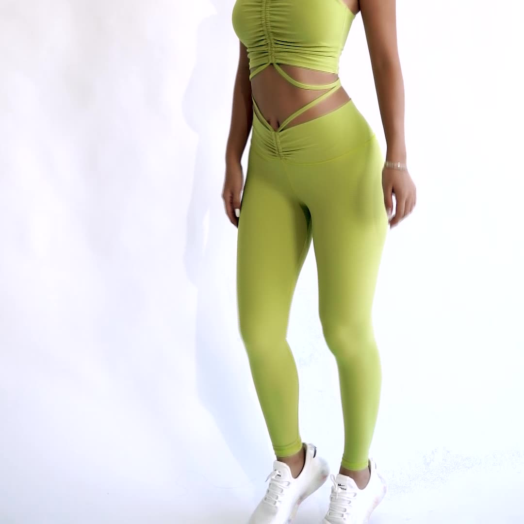 05/2025 Tight yoga pants, crossed high-waisted color-blocking tight pants, women's sports running fitness pants 9253