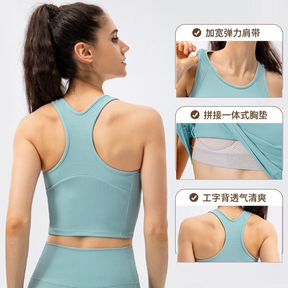 Yoga vest women's high-intensity sports bra one-piece vest with chest pad tight training running top 22740