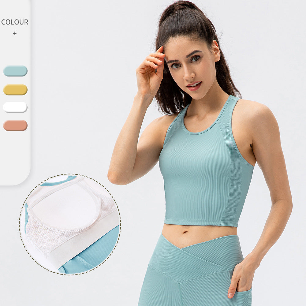03/2025 Summer Yoga vest top Women with breast pad Beautiful back halter vest no underwire push-up bra