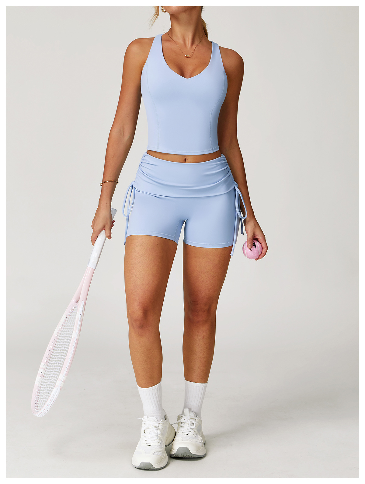 2022 new triangle beauty back fitness sports bra thin shoulder straps gathered nude yoga bra
