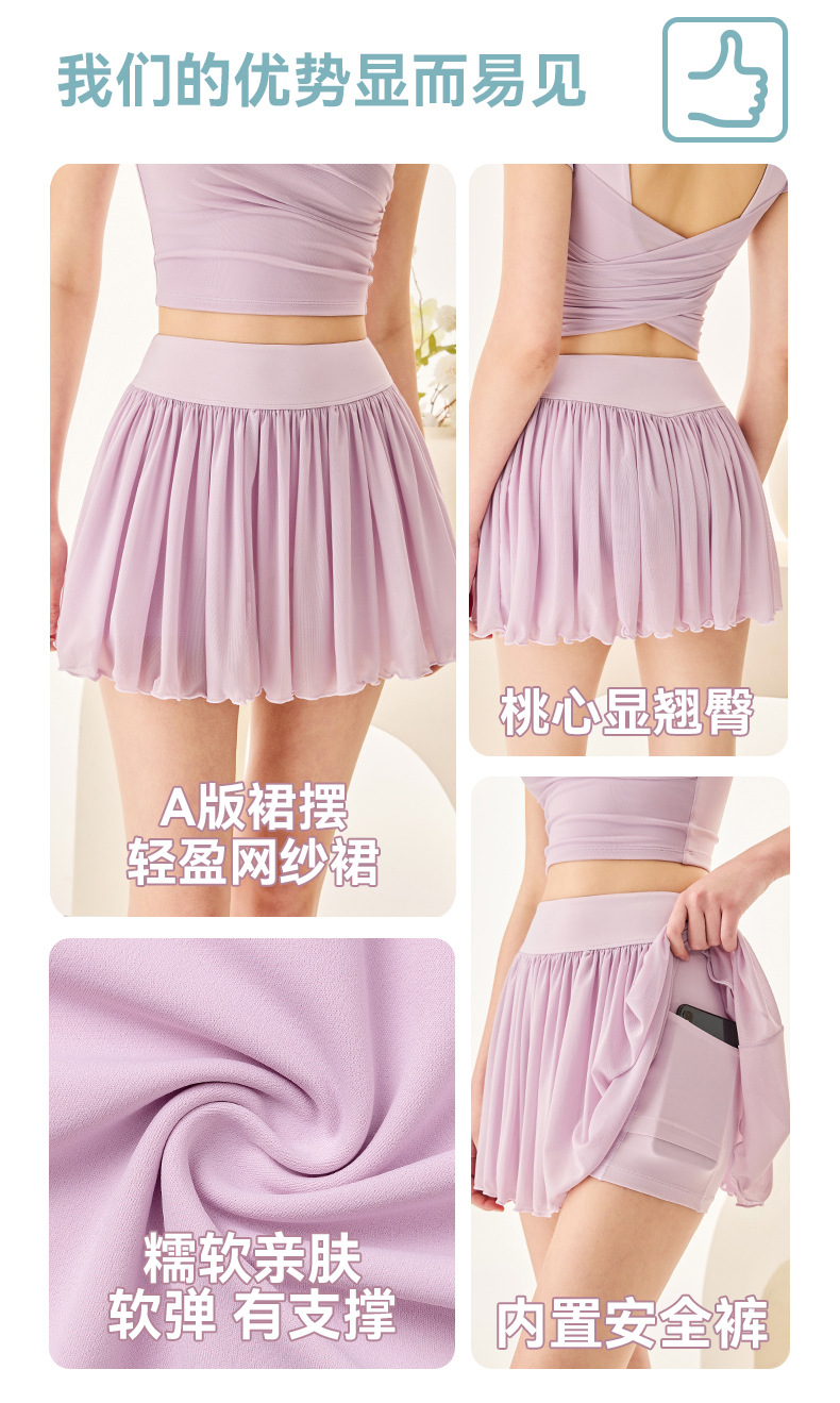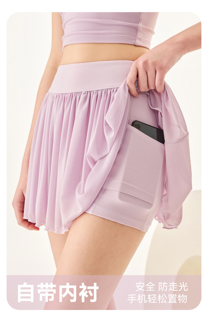 12/2024 Fake two-piece sports dress for women, anti-exposure bottoming, outdoor running fitness tennis skirt 4001
