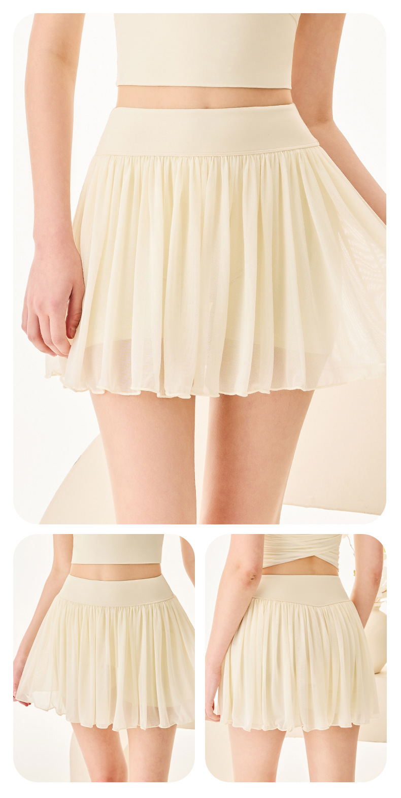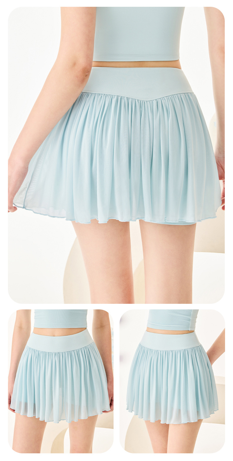 05/2025 New summer tennis skirt women's high waist solid color fake two-piece sports skirt anti-exposure cake edge short skirt