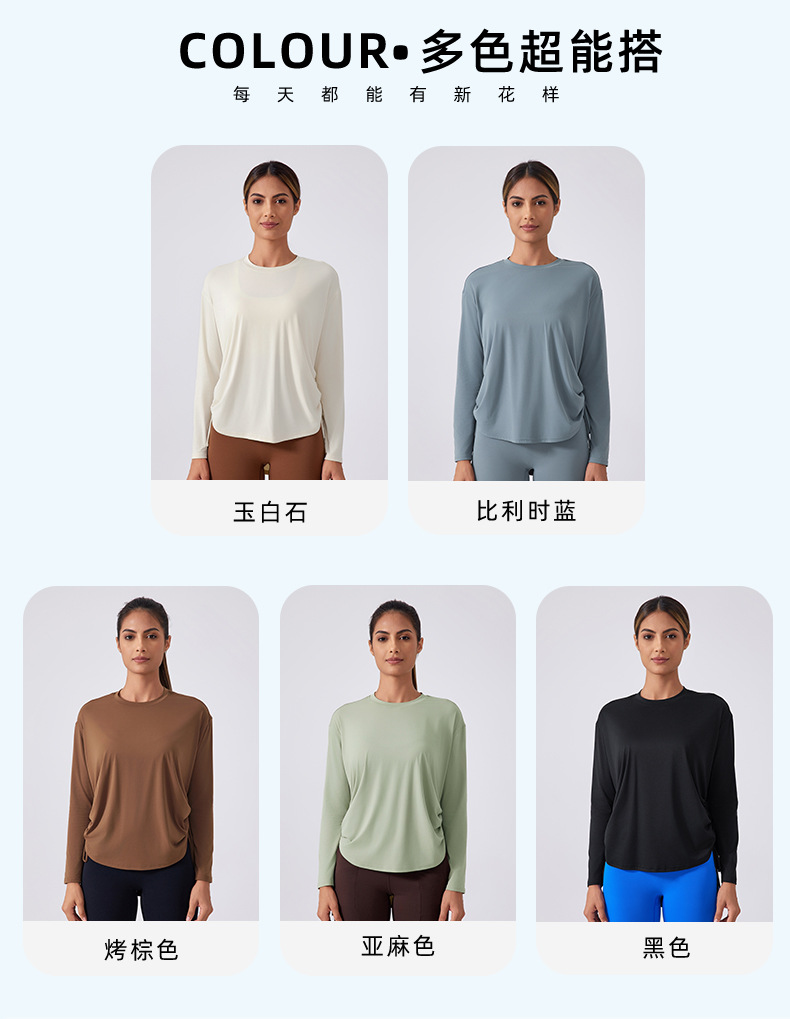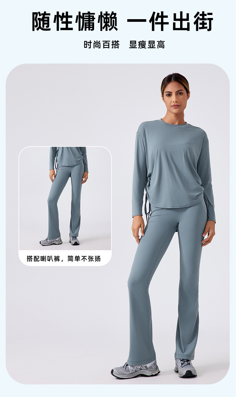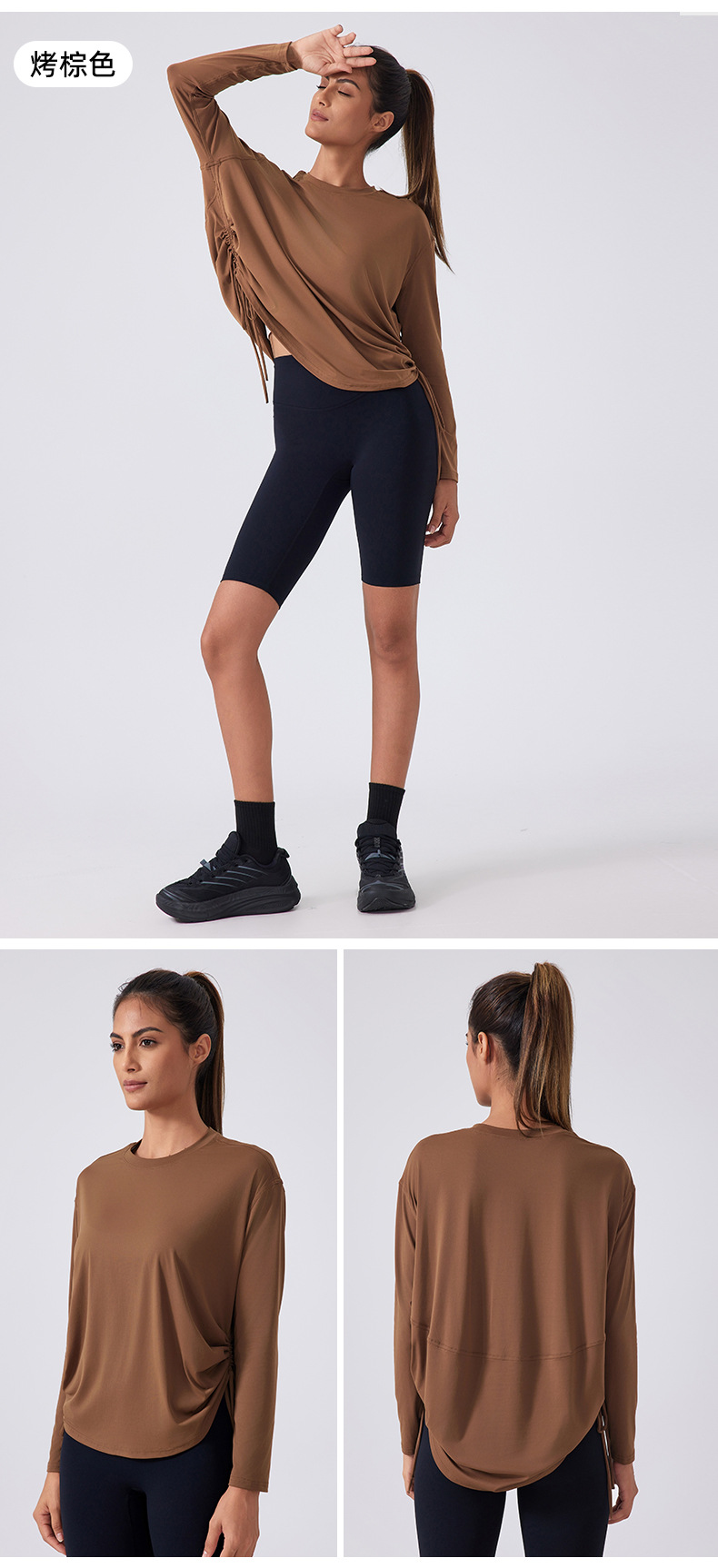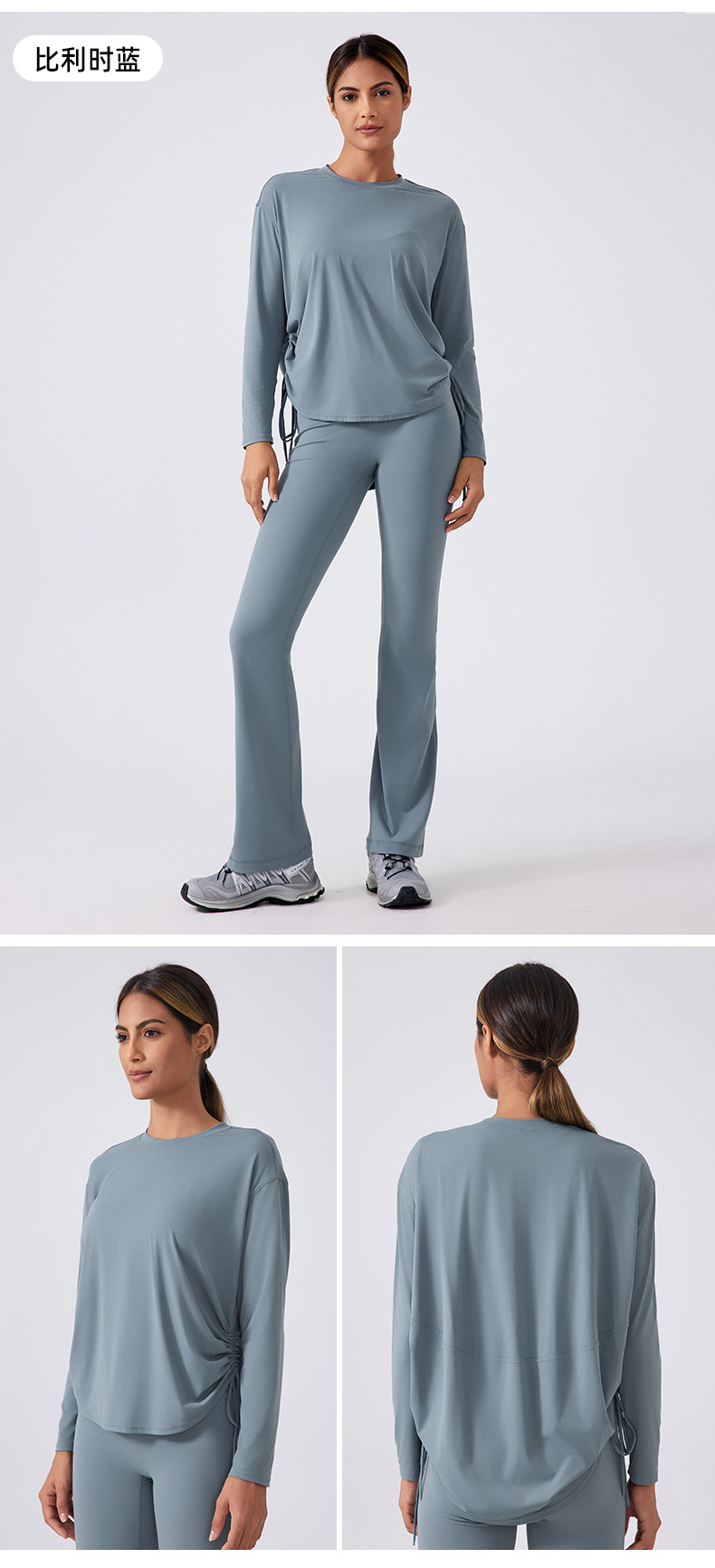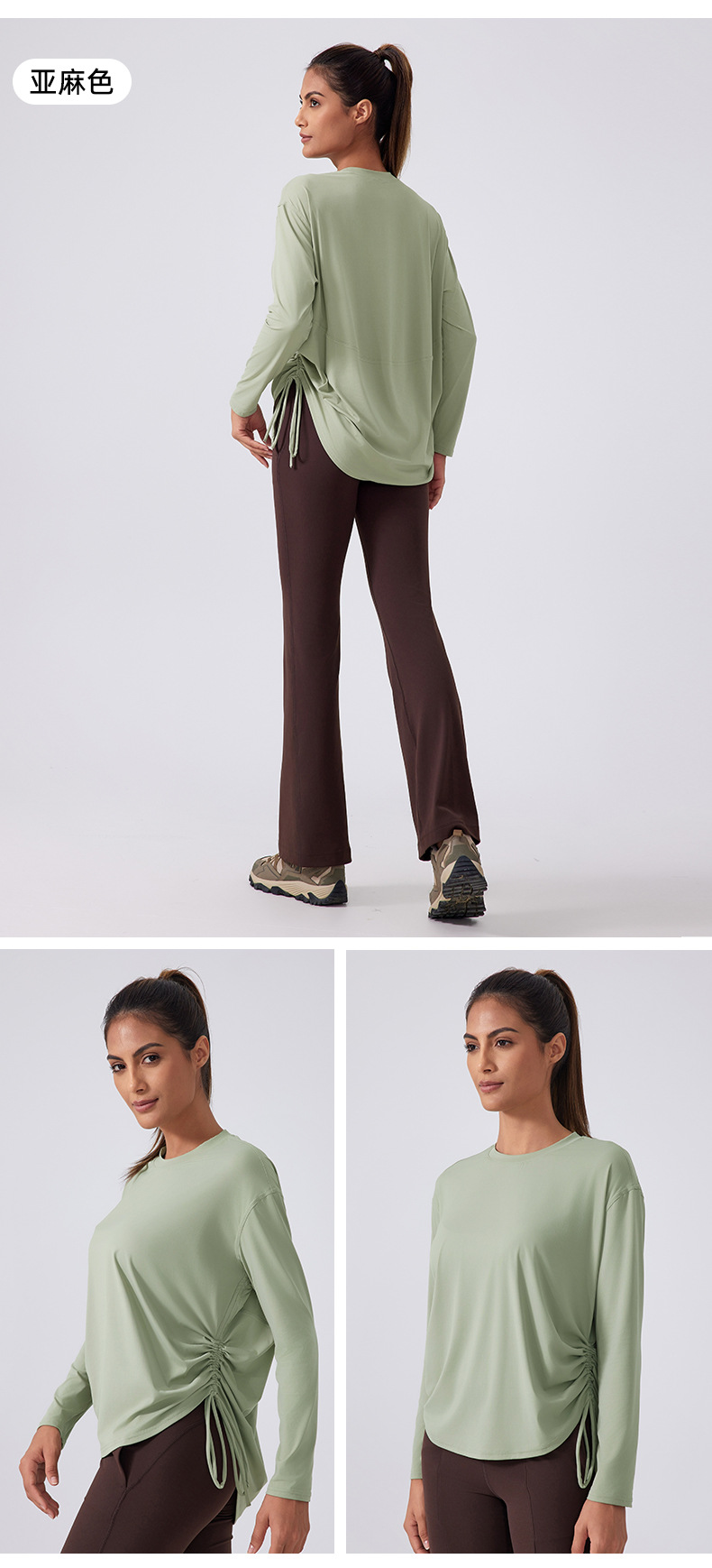 09/2024 Autumn new loose yoga clothes drawstring waist sports tops women quick-drying breathable running fitness clothes DAW187