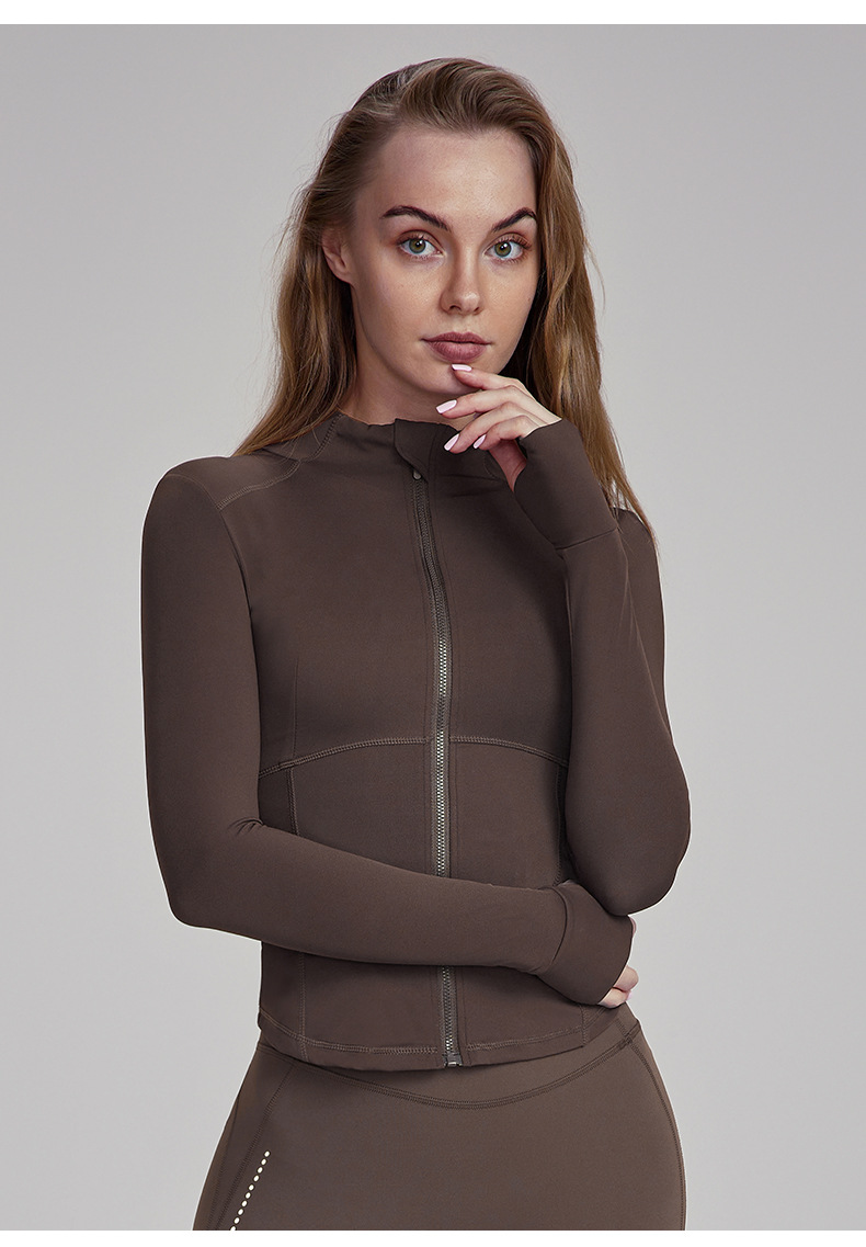 09/2024 Back mesh breathable yoga top coat autumn and winter sports coat women's senior sense of professional running fitness wear