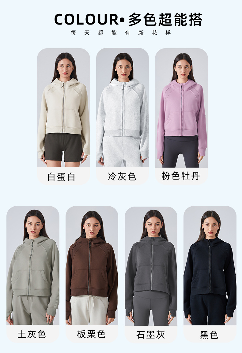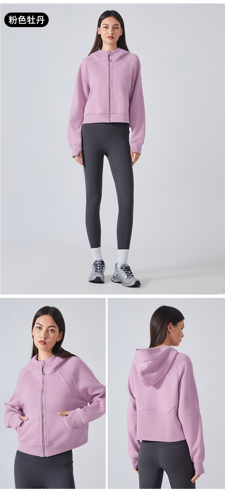 08/2024 Loose Cardigan Zipper Hooded Sweatshirt Women Plus Velvet Sports Jacket Tops Autumn and Winter Yoga Jacket DAW151