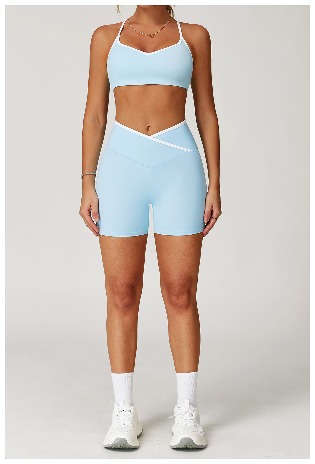 08/2024 Cross high waist yoga shorts tight nude peach hip sports shorts women's outdoor fitness pants 8843