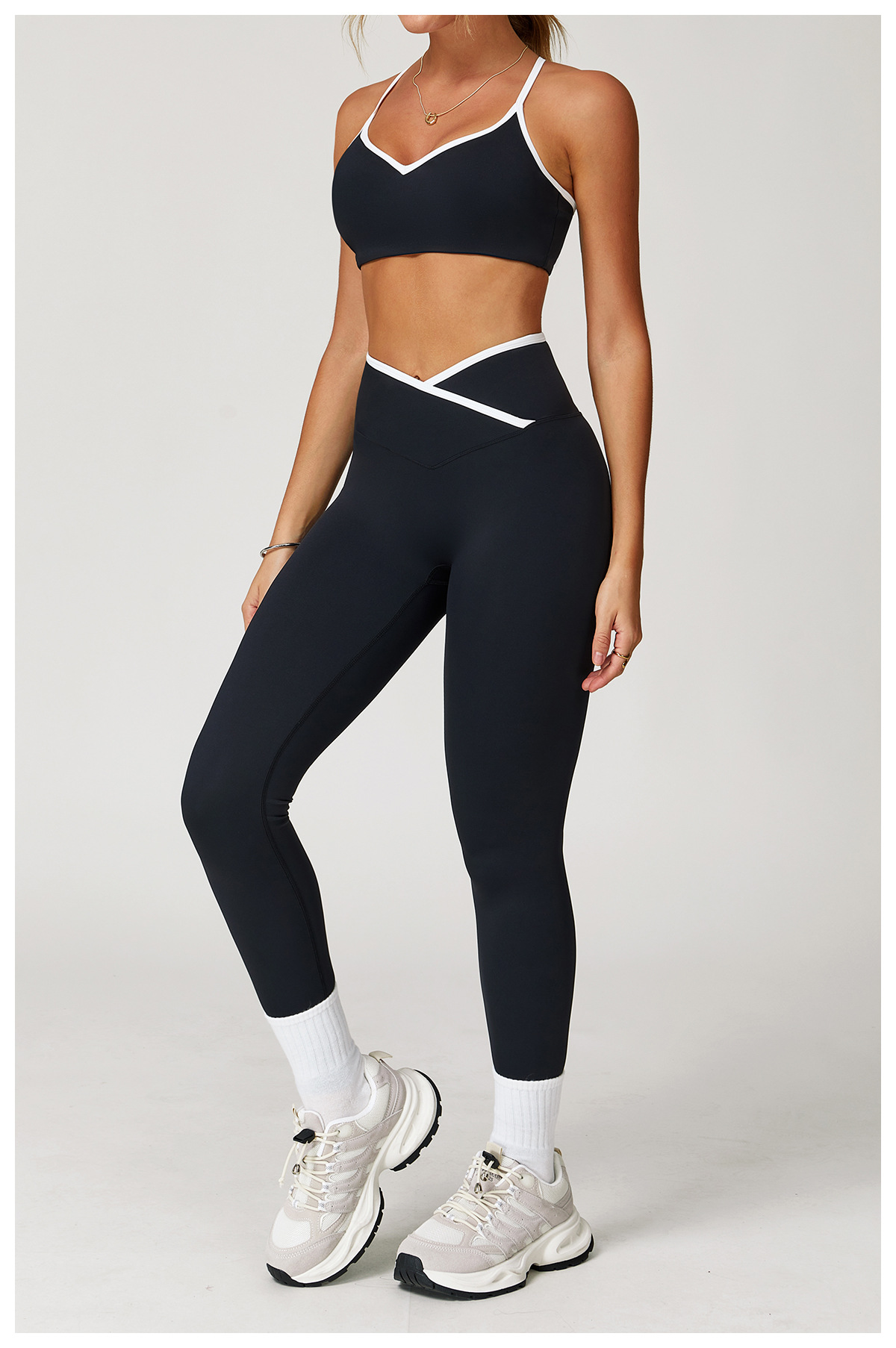 05/2025 Tight yoga pants, crossed high-waisted color-blocking tight pants, women's sports running fitness pants 9253