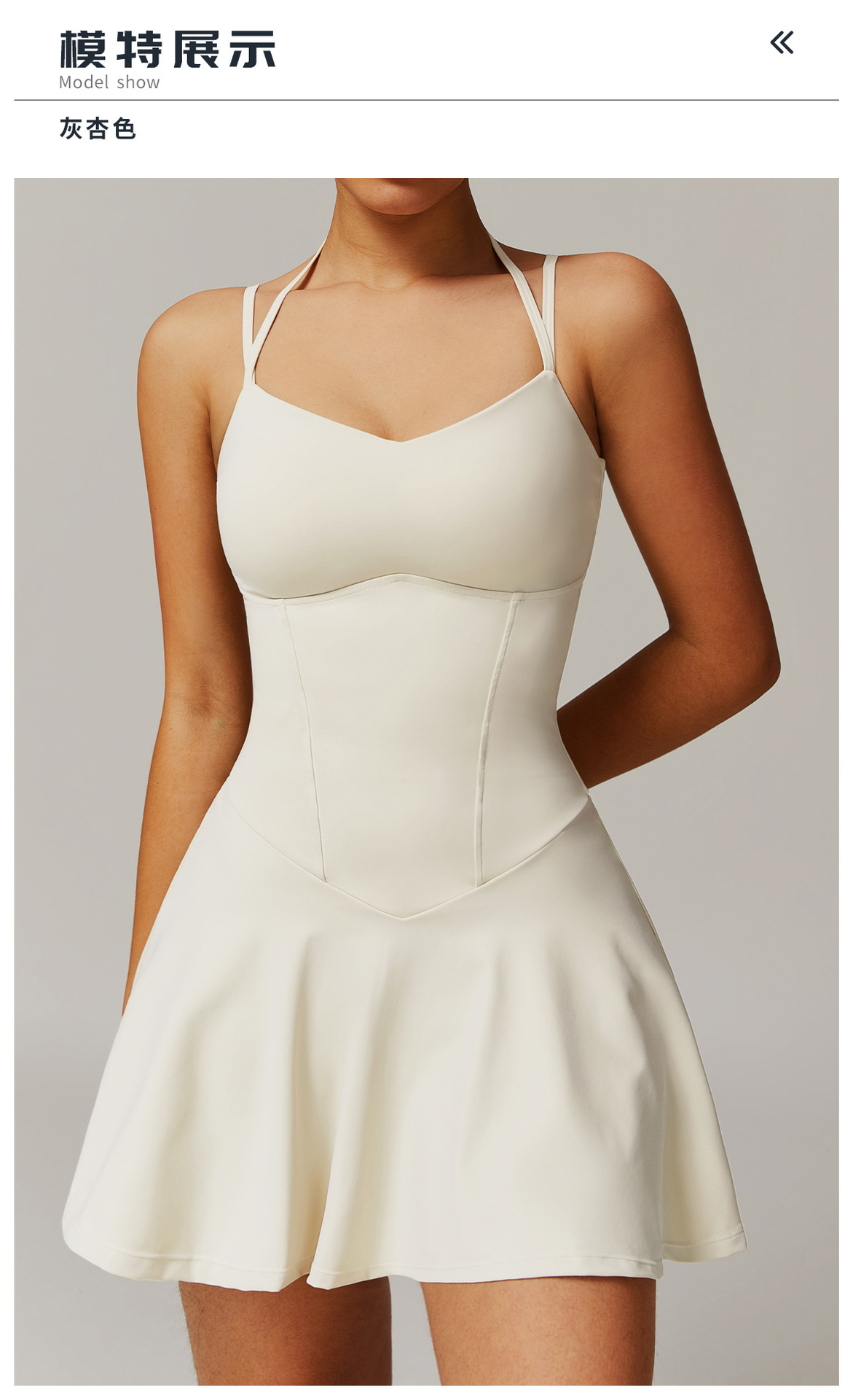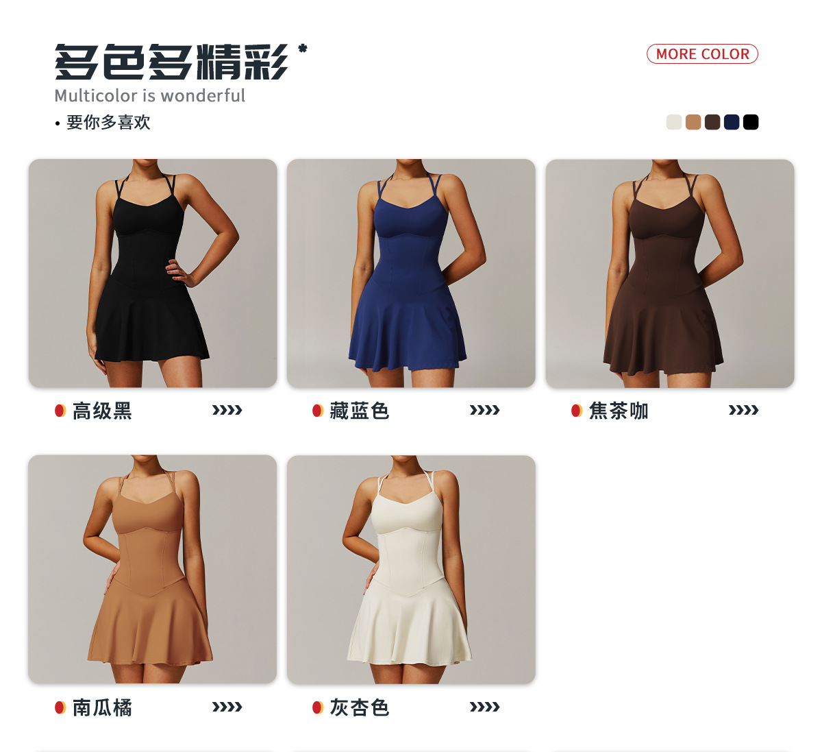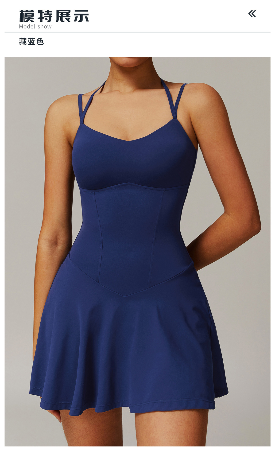 03/2025 Halter dress women pocket base anti-slip A-line skirt running sports tennis skirt 9172
