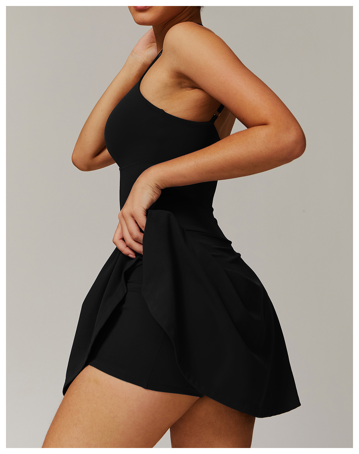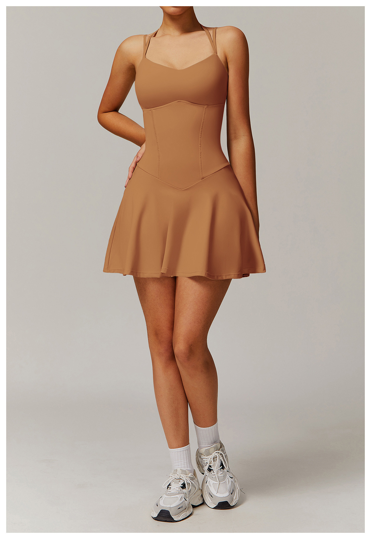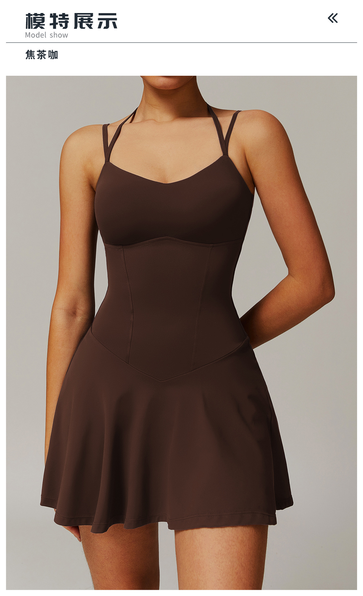 03/2025 Halter dress women pocket base anti-slip A-line skirt running sports tennis skirt 9172