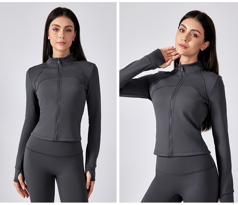 08/2024 Autumn and winter new style zero sense plus velvet yoga suit short slim sports jacket fitness jacket tops female DAW195