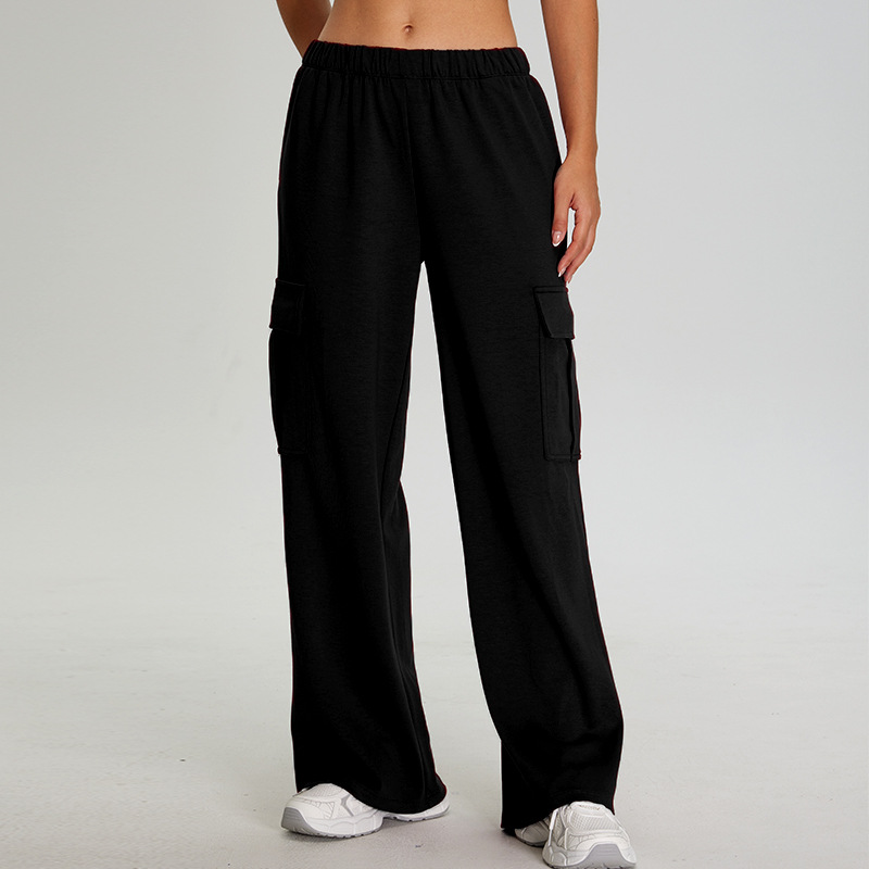 11/2024 New loose casual sports pants women's elastic waist wide leg straight overalls quick-drying running yoga pants